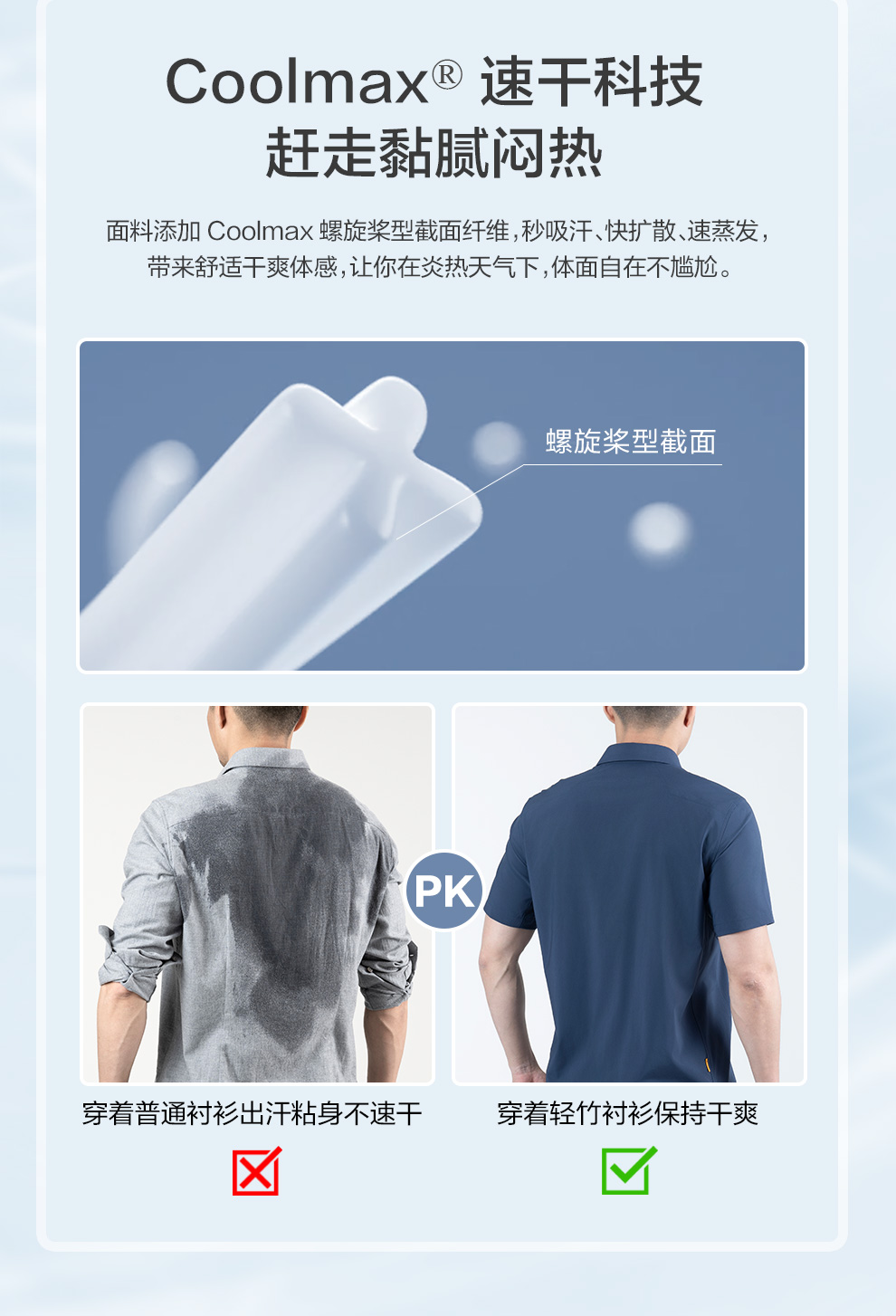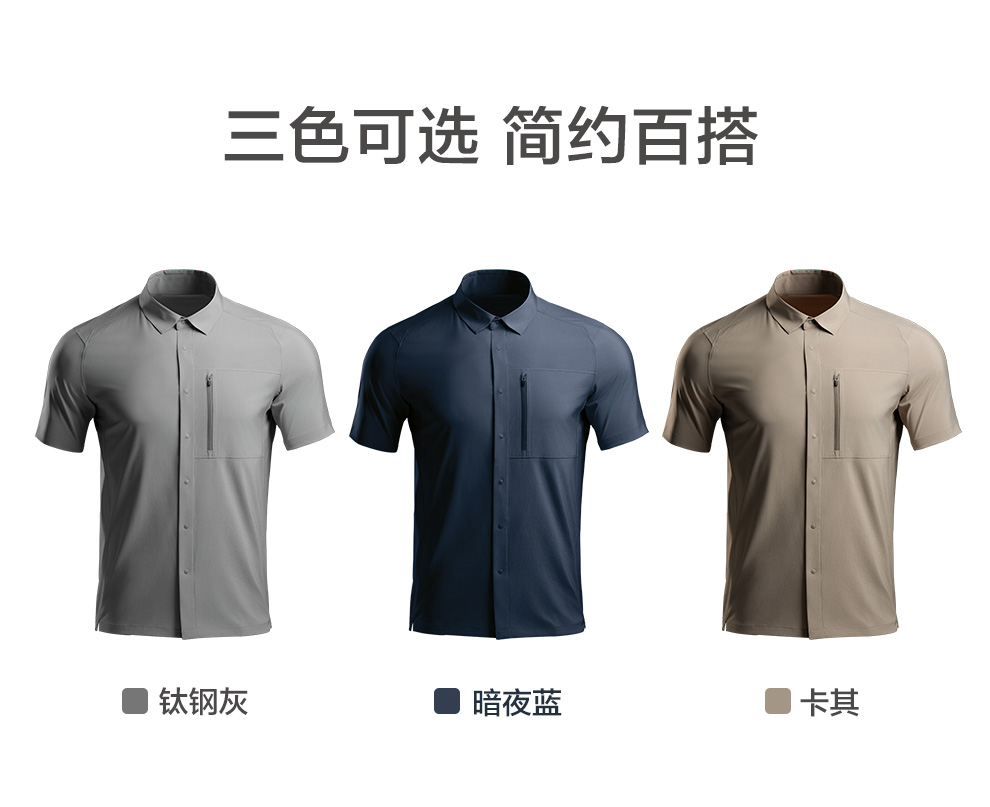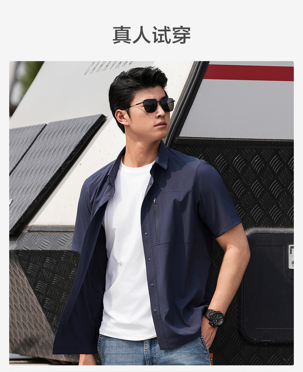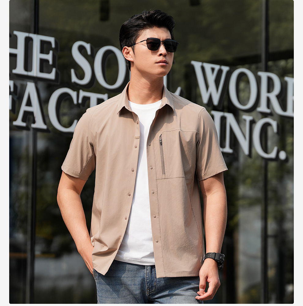 隐之轻竹速干休闲短袖衬衫春夏凉爽防晒短袖通勤百搭男半袖