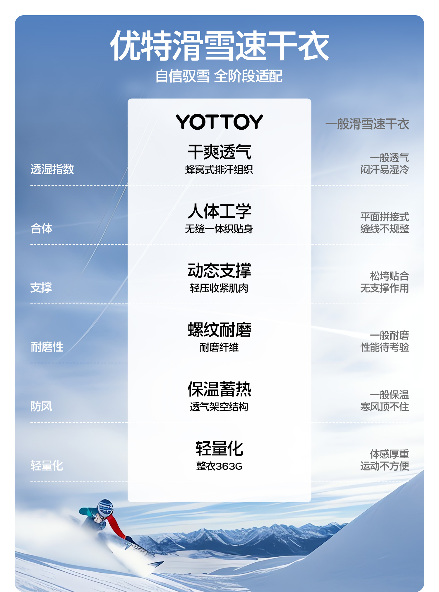 YOTTOY滑雪速干衣女内穿保暖长袖打底衣排汗速干冬季滑雪运动套装