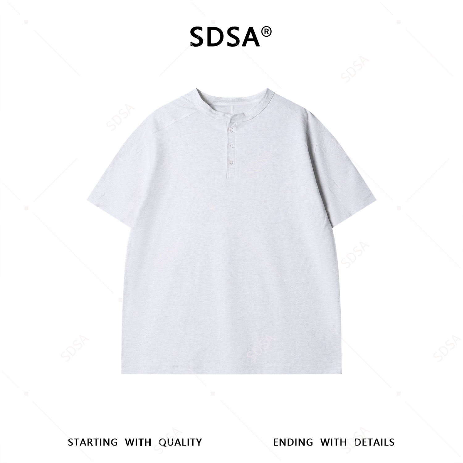 SDSA男装2026新款日系复古亨利领上衣重磅插肩明线宽松短袖休闲衫