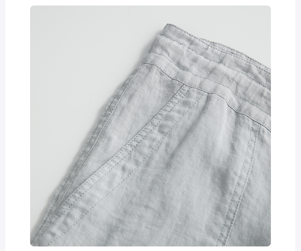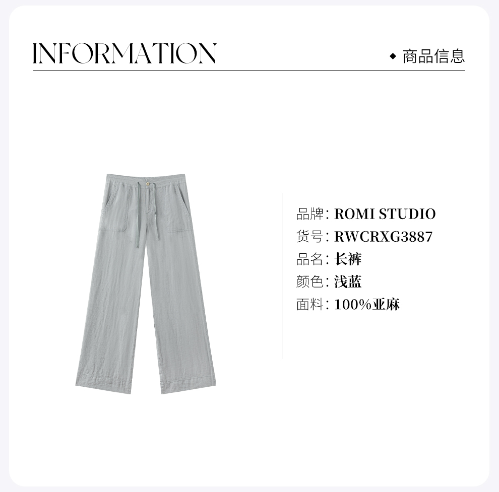 ROMI STUDIO“夏日清新”100%亚麻轻薄松紧腰直筒休闲裤 RWCRXG3887【发货时间:25-30天】