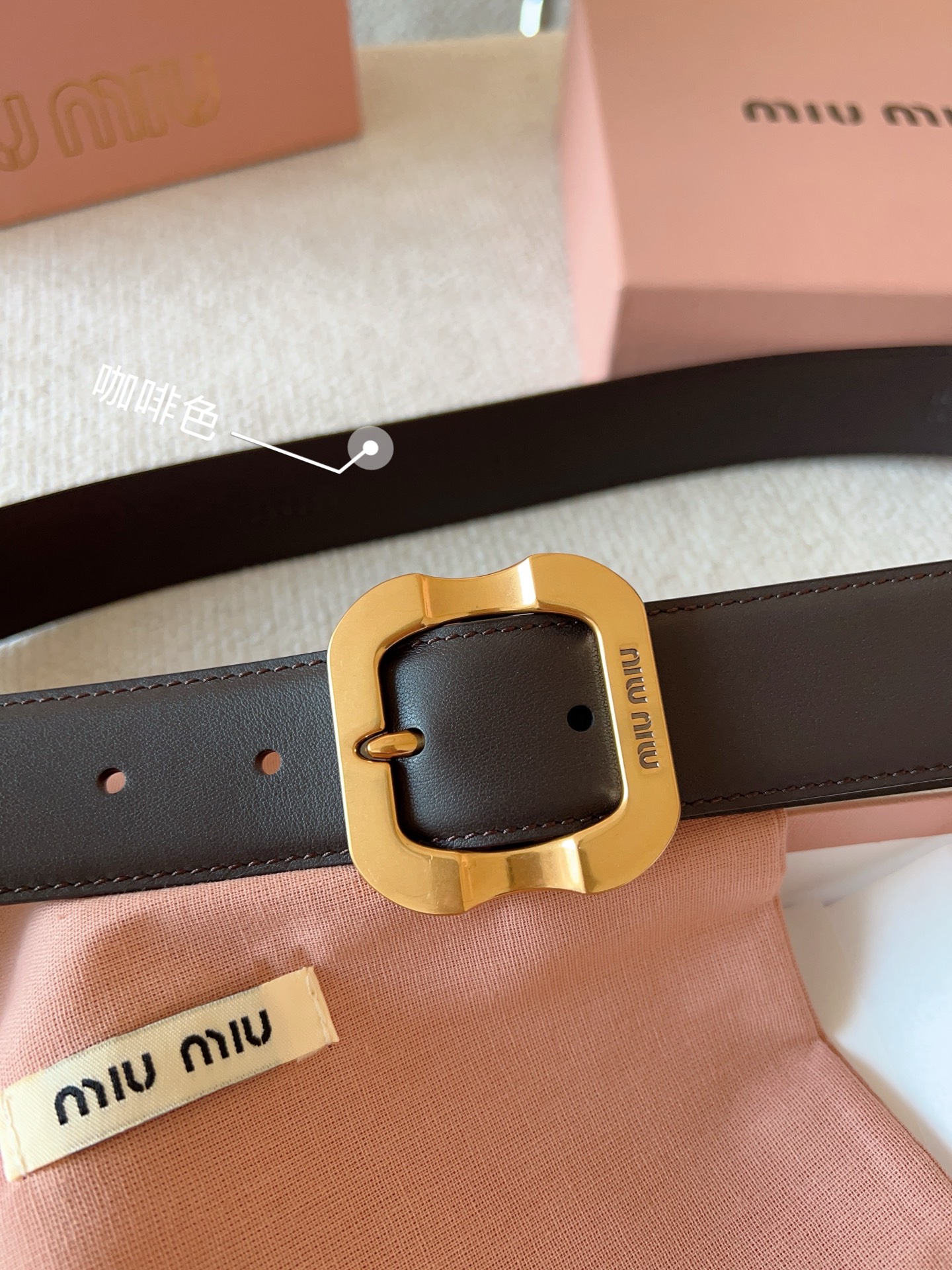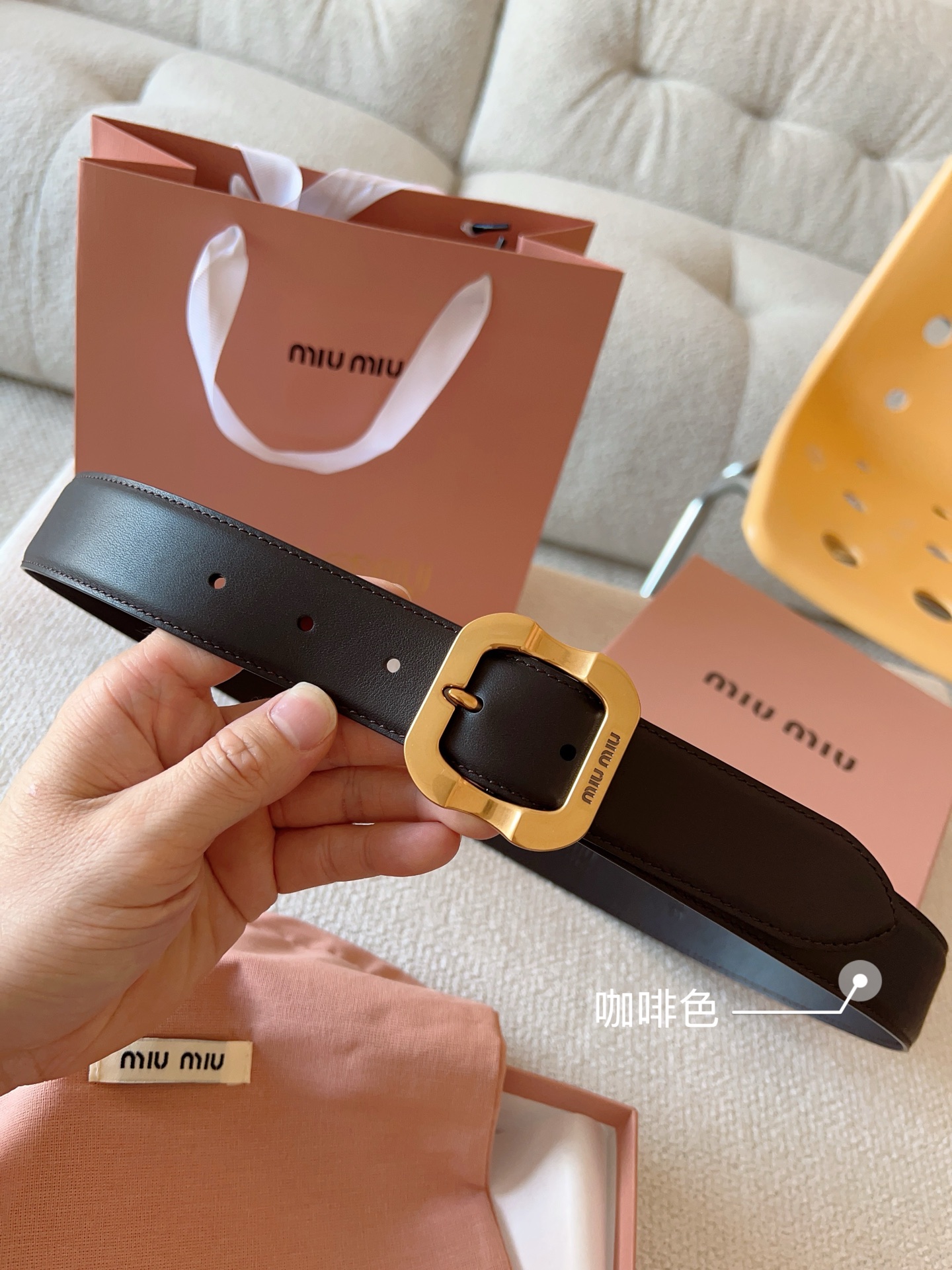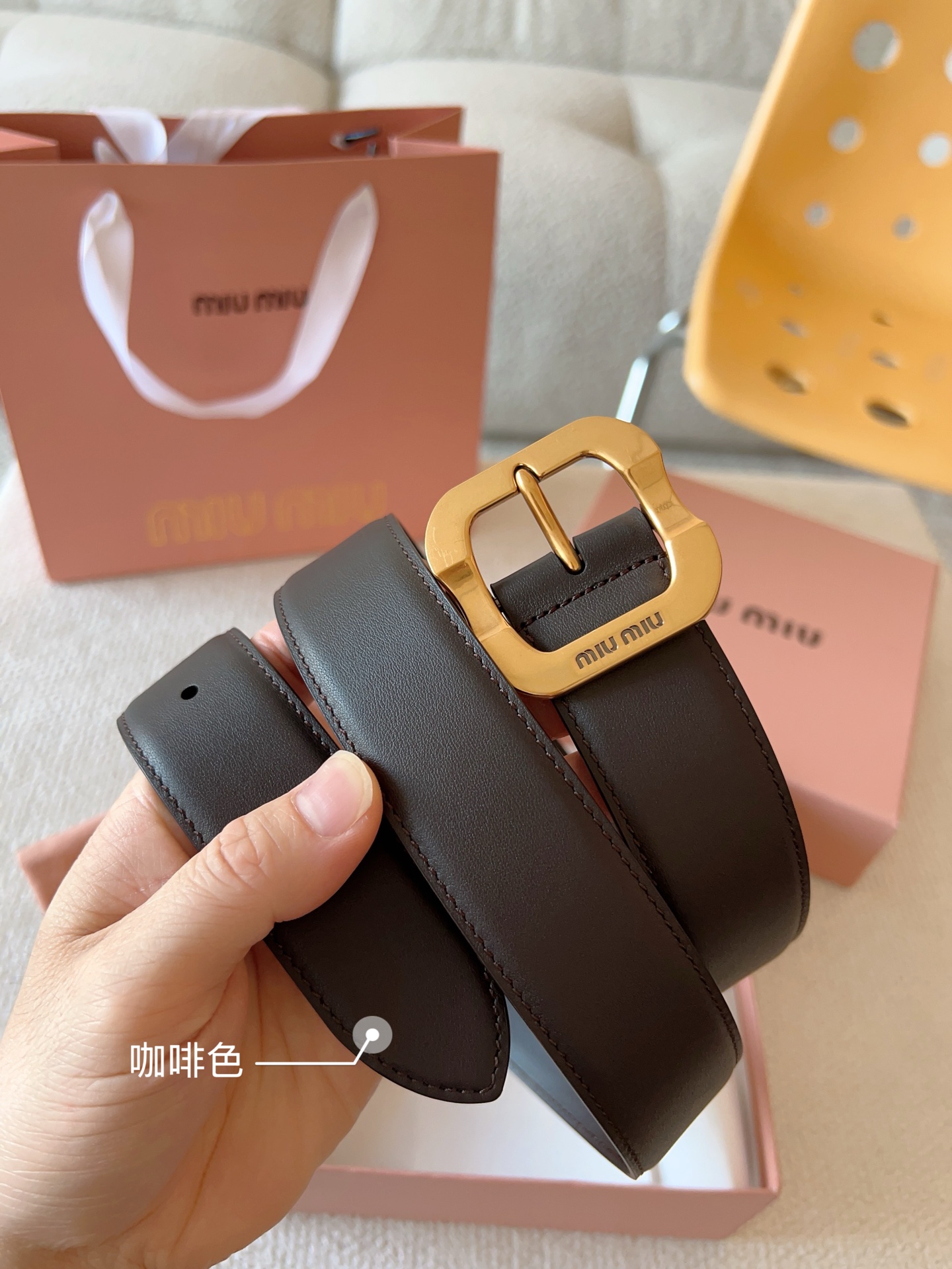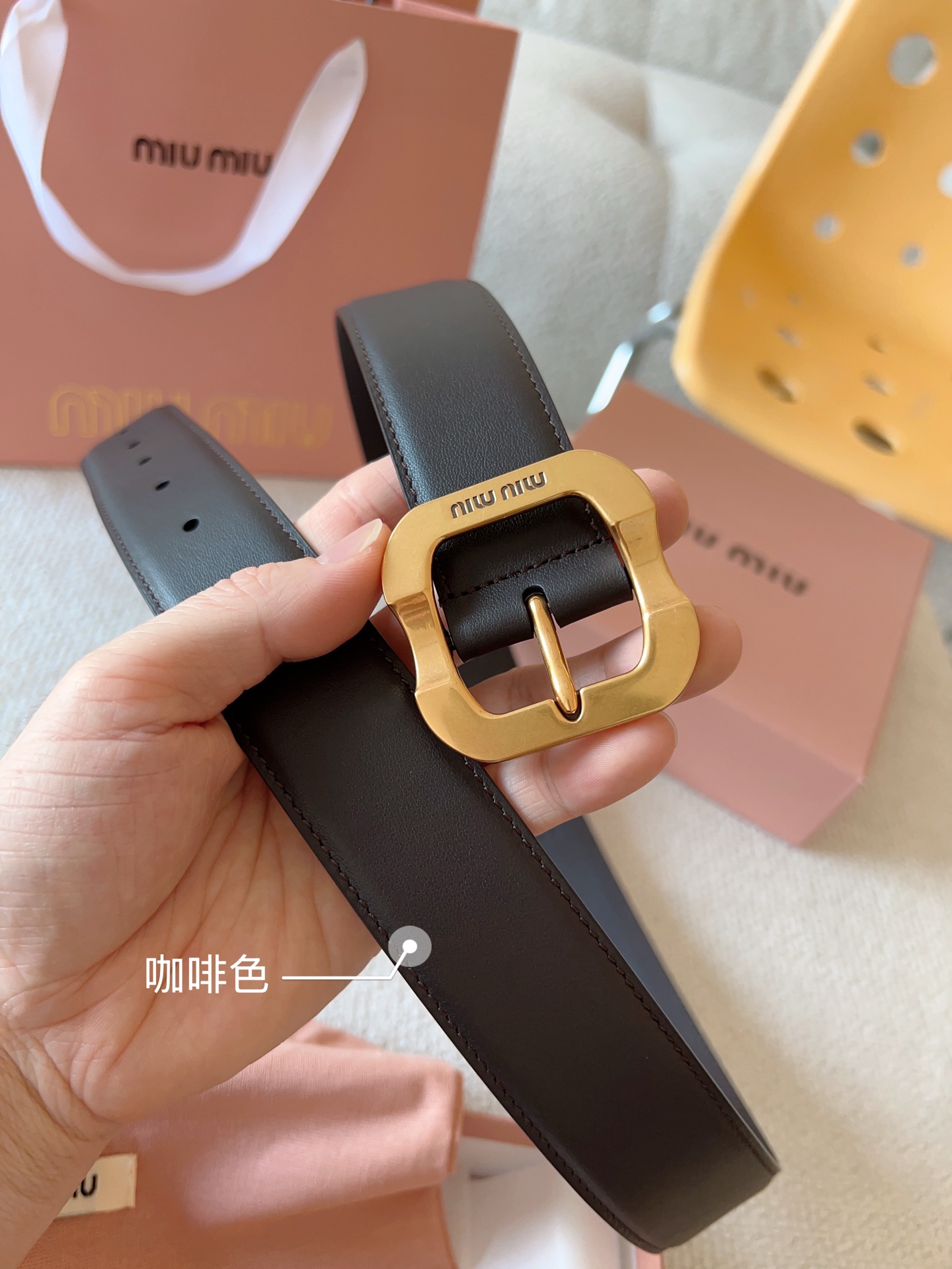 Miu Miu这款皮革腰带设计简约而优雅。金属搭扣饰以Miu Miu徽标,品牌格调一览无余。结合金属细节和标志性元素,彰显Miu Miu腰带的精致材质。百搭、实用、休闲、优雅,无论何种造型风格,均可轻松驾驭!皮带宽度:35mm