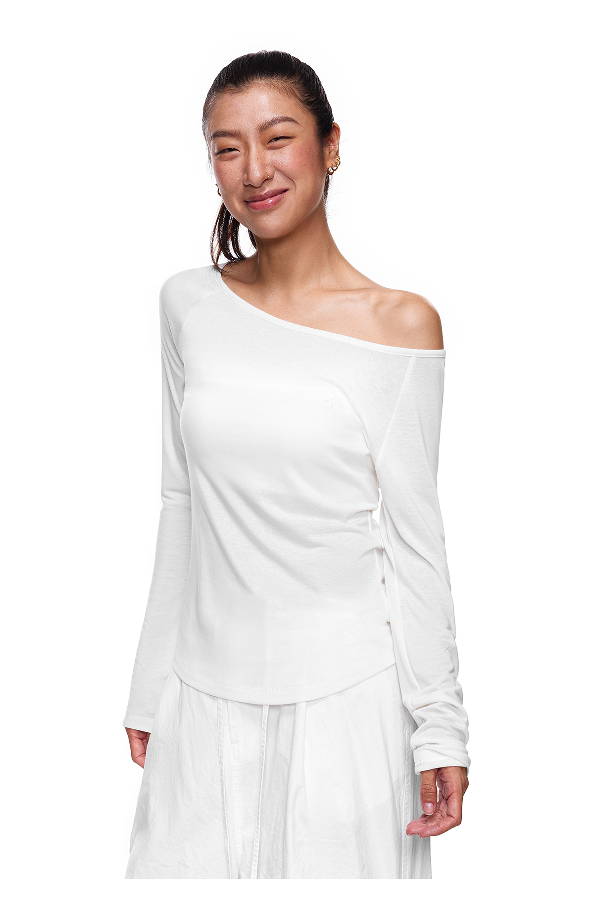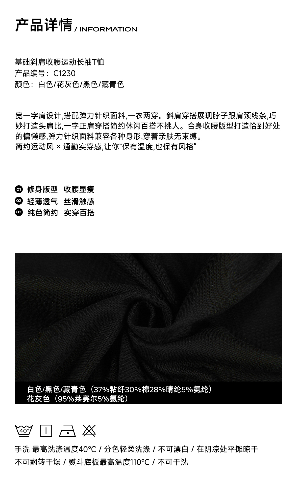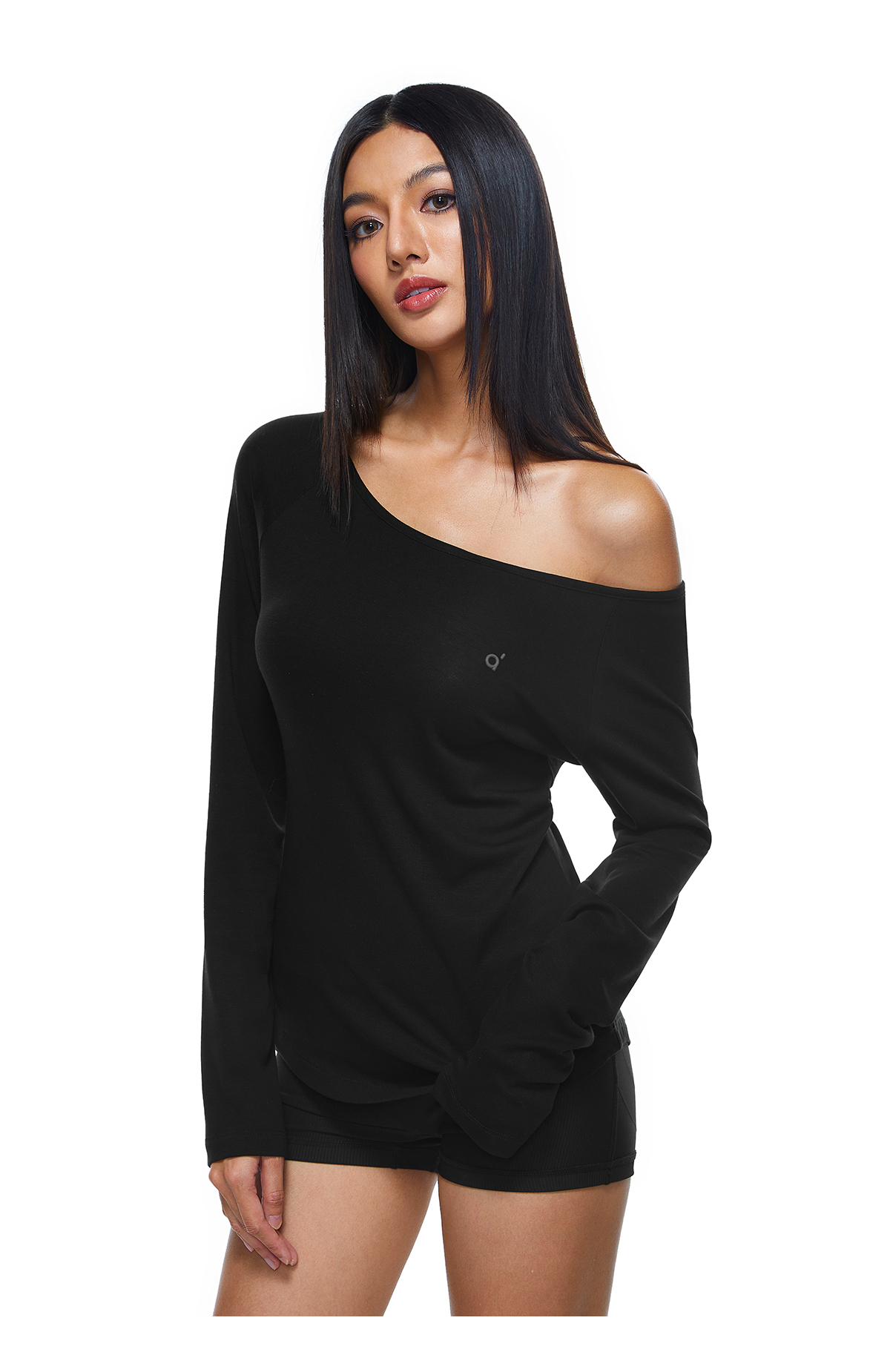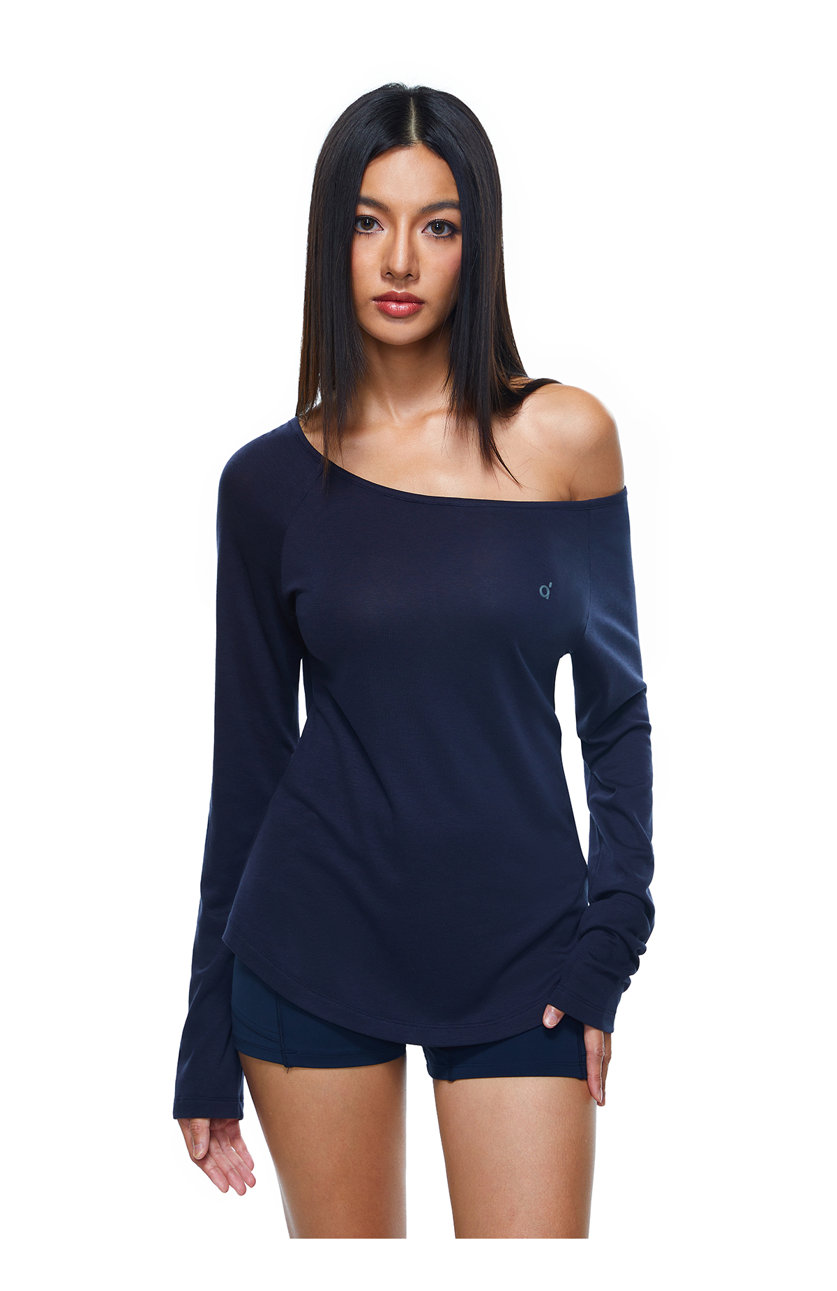 【178元任选3件】FDR旗舰店 轻薄透气斜肩长袖t恤女收腰显瘦运动打底一字肩上衣