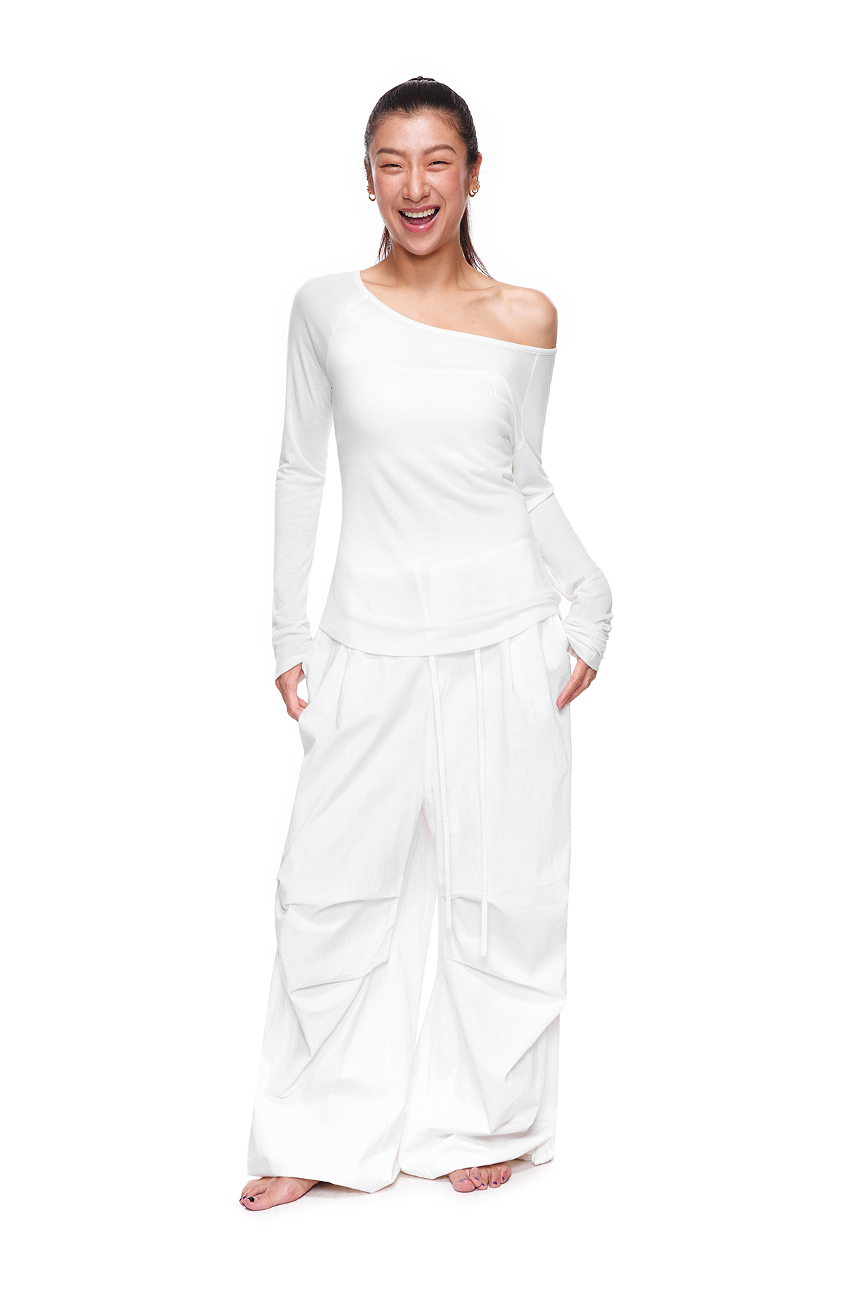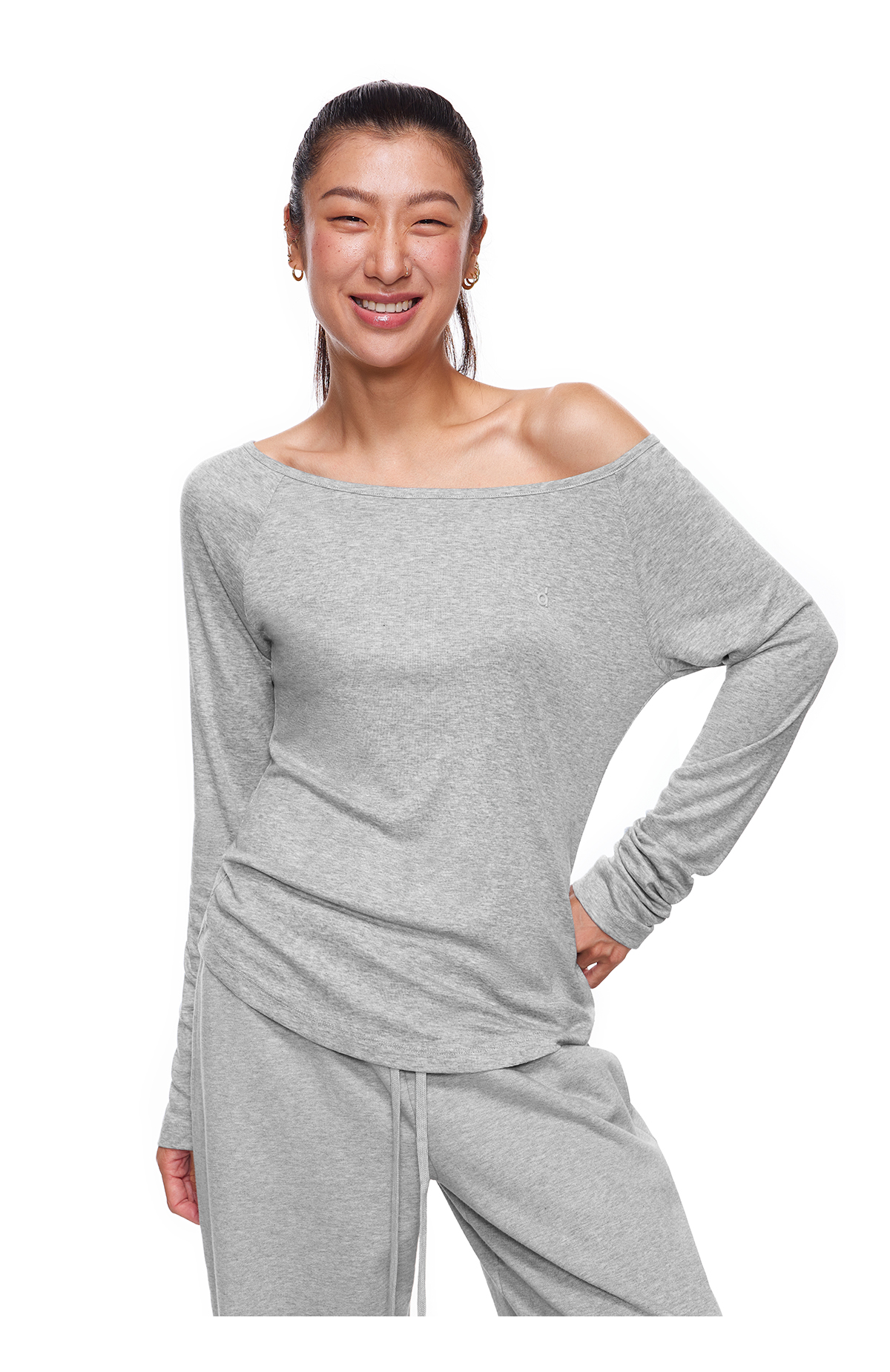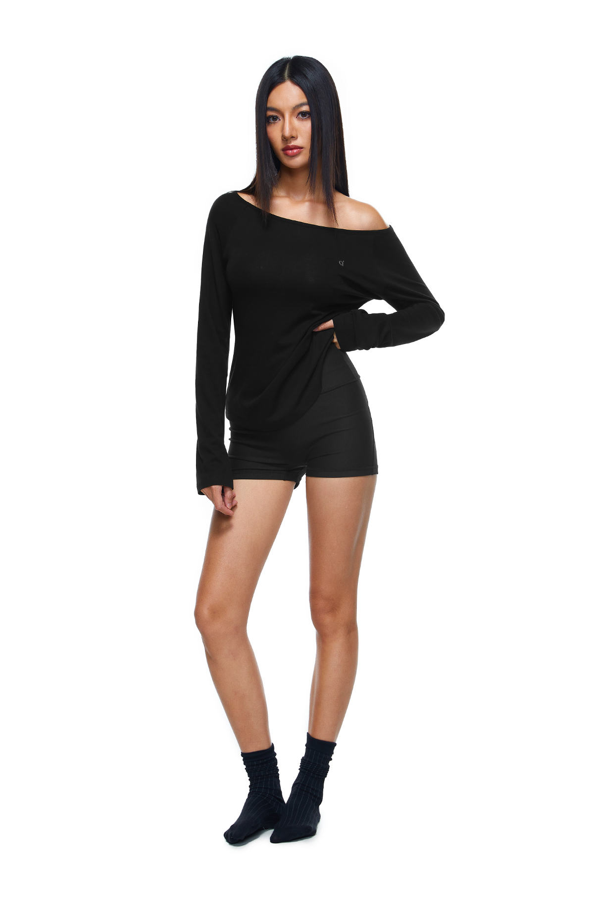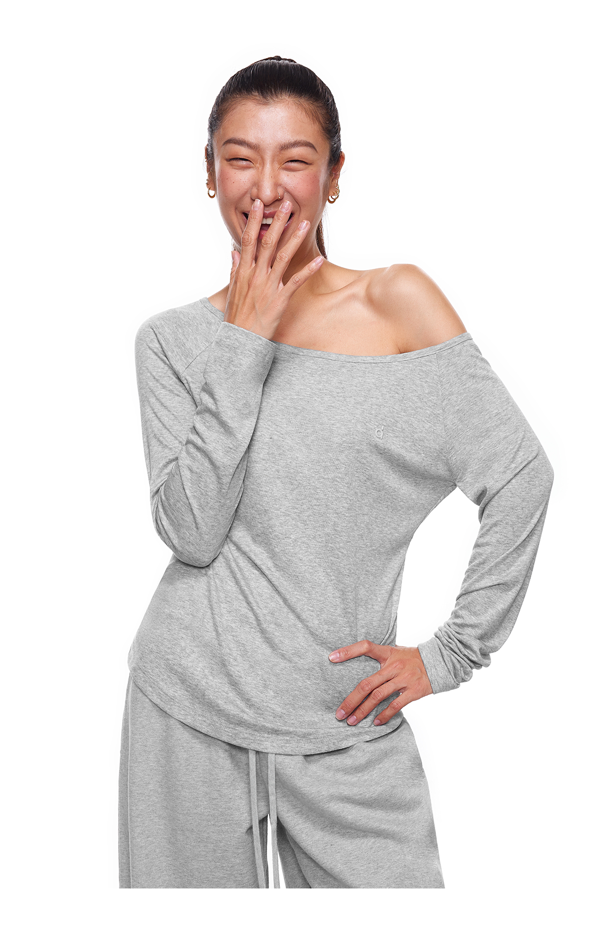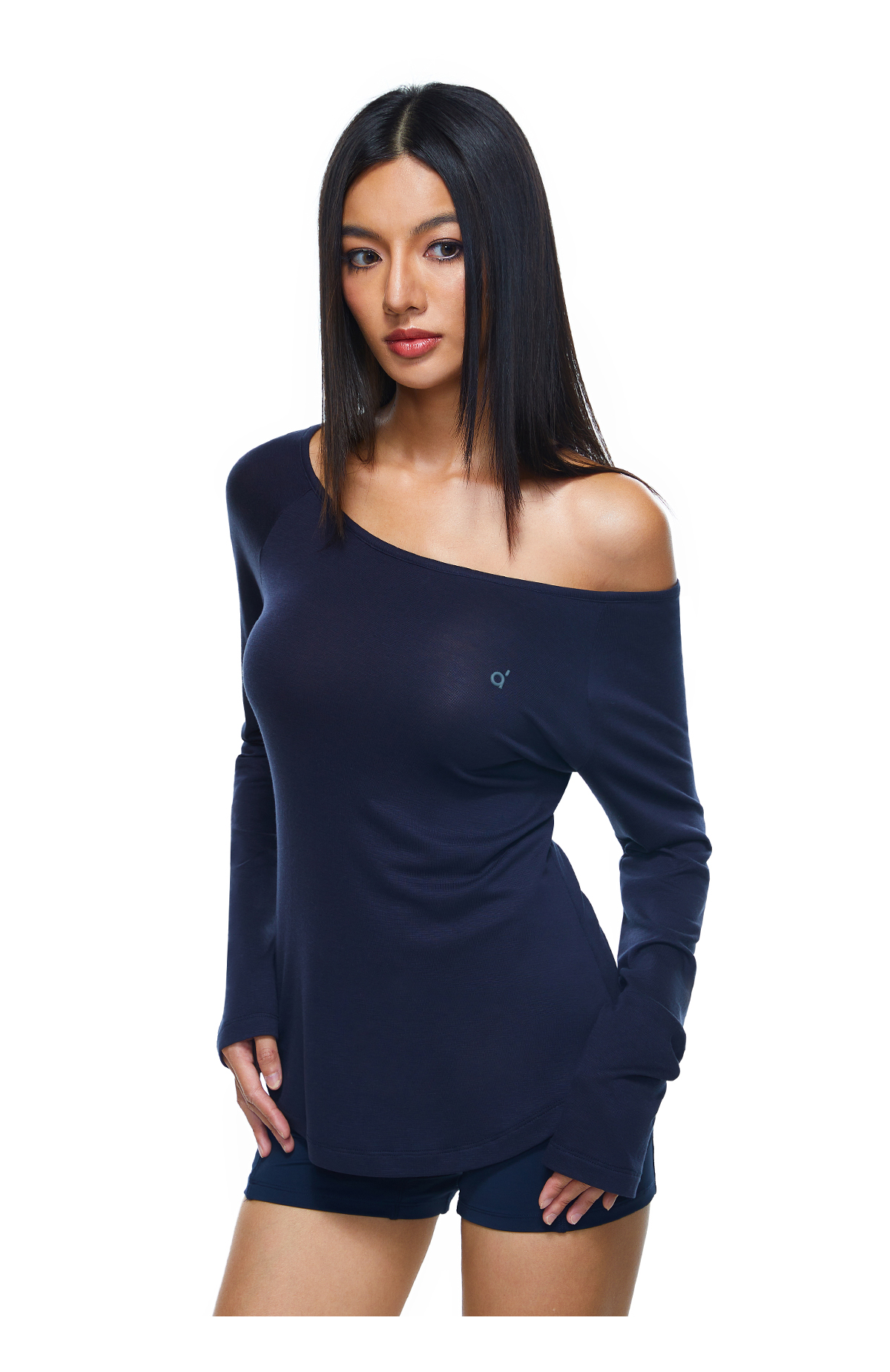 【178元任选3件】FDR旗舰店 轻薄透气斜肩长袖t恤女收腰显瘦运动打底一字肩上衣