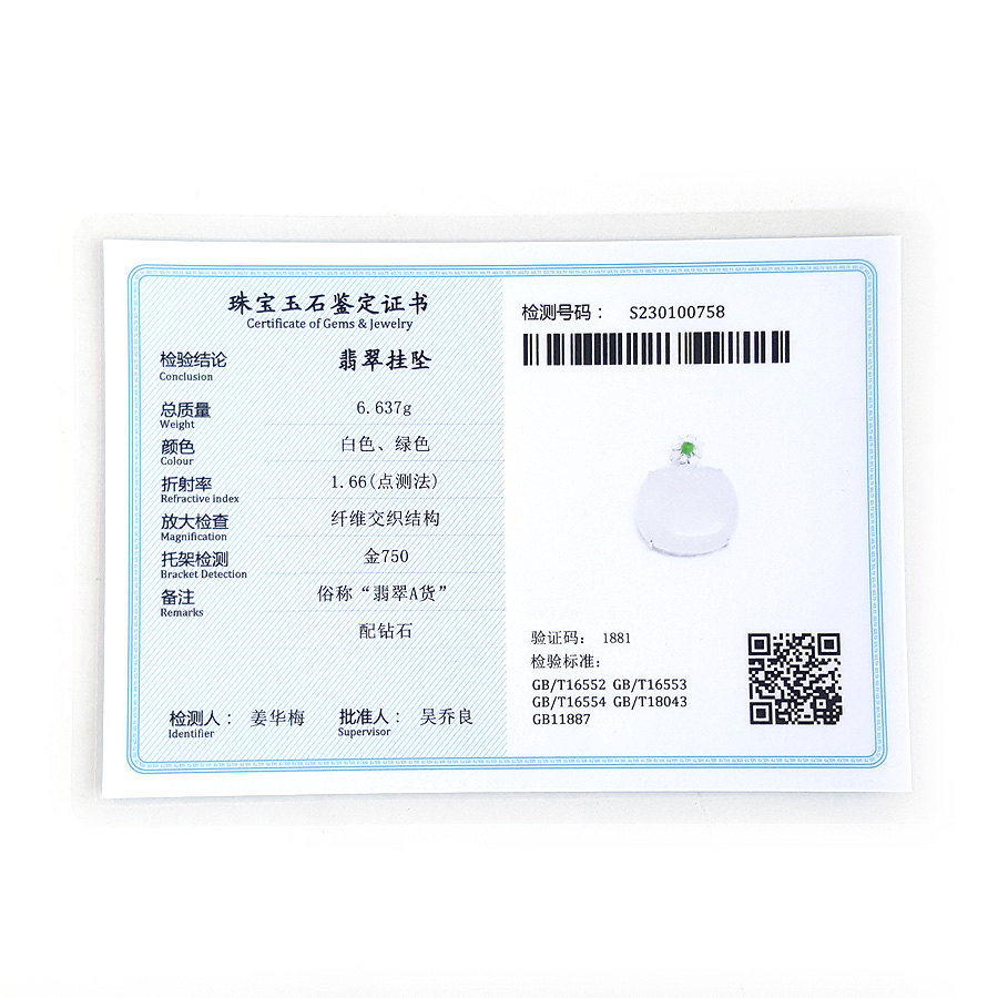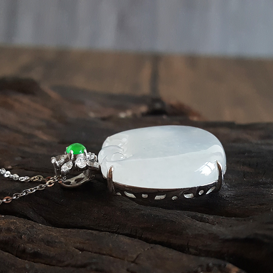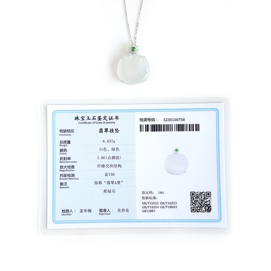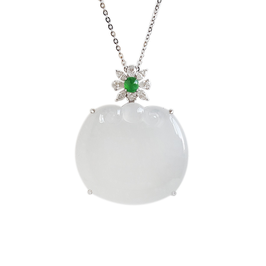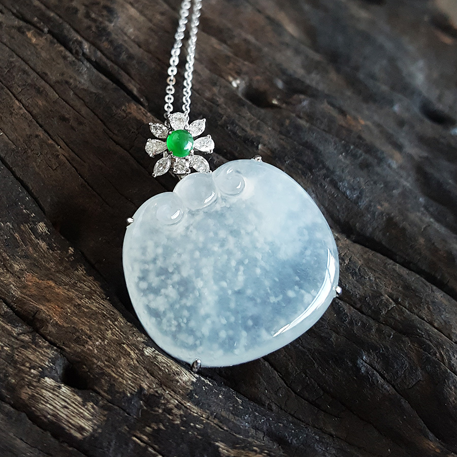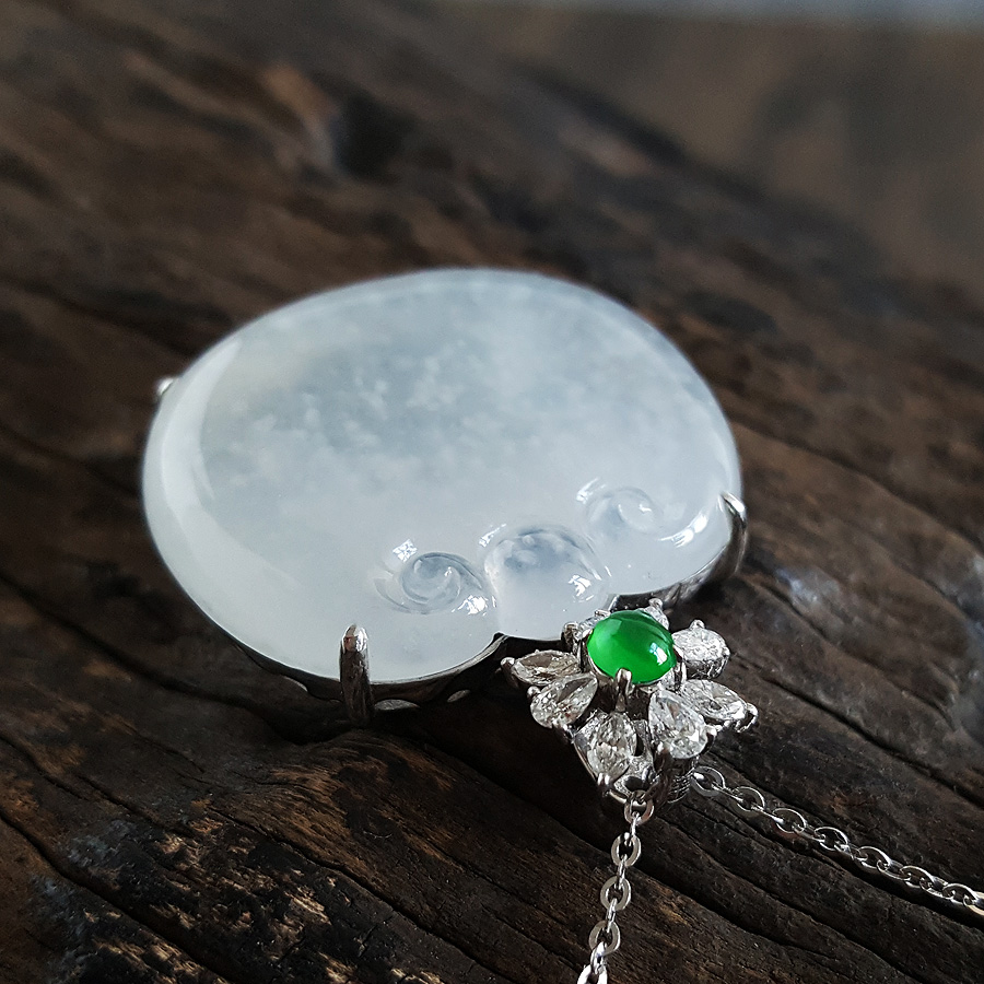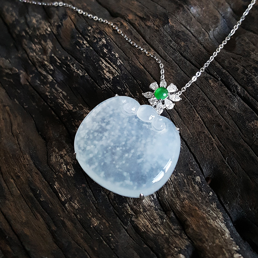 【天然正品】天然冰种飘木那雪花棉如意翡翠吊坠项链27.8*22.9*6.8MM(皆取最大值)160123XY02+