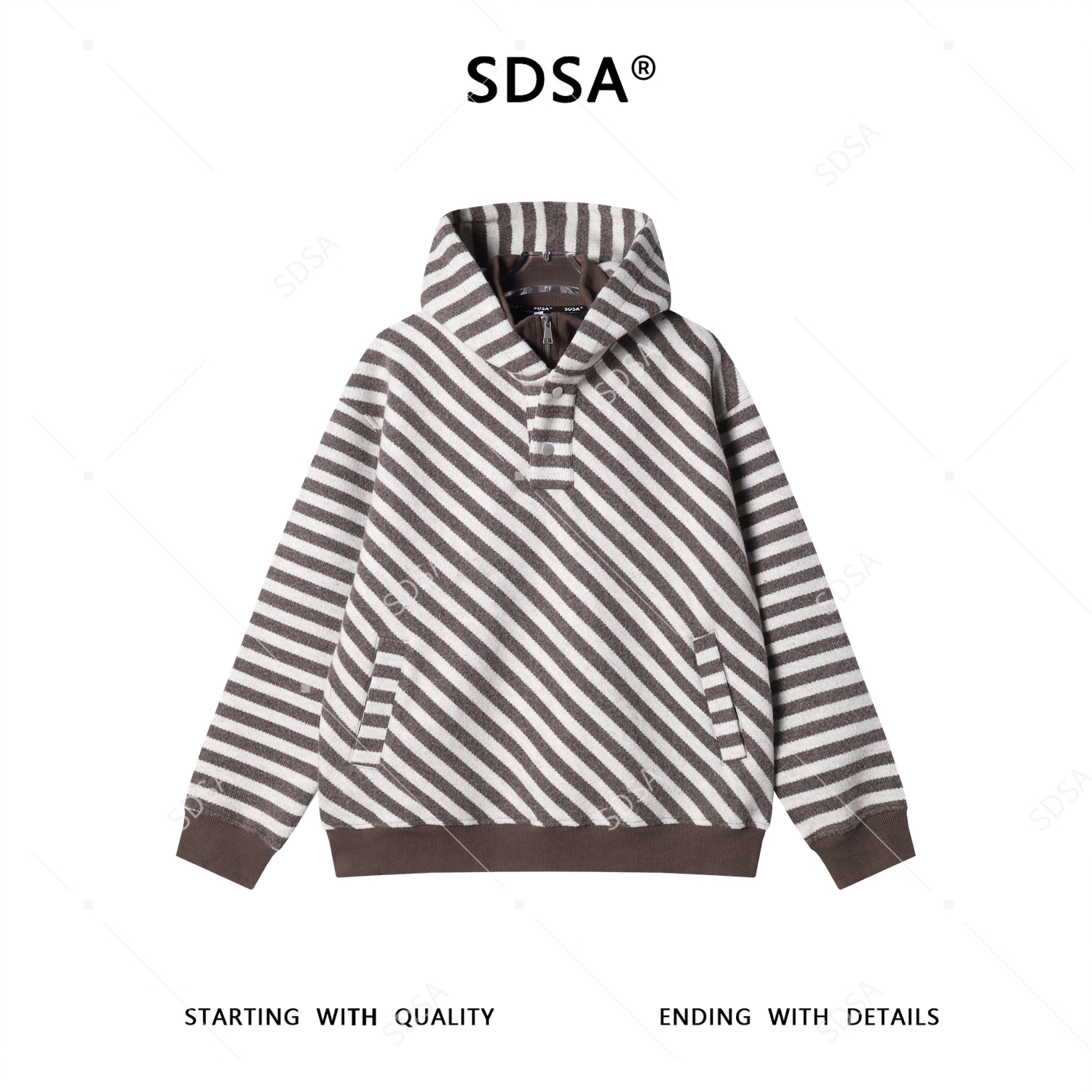 SDSA男士秋冬新款痞帅男装韩版撞色斜纹按扣立领连帽卫衣百搭时