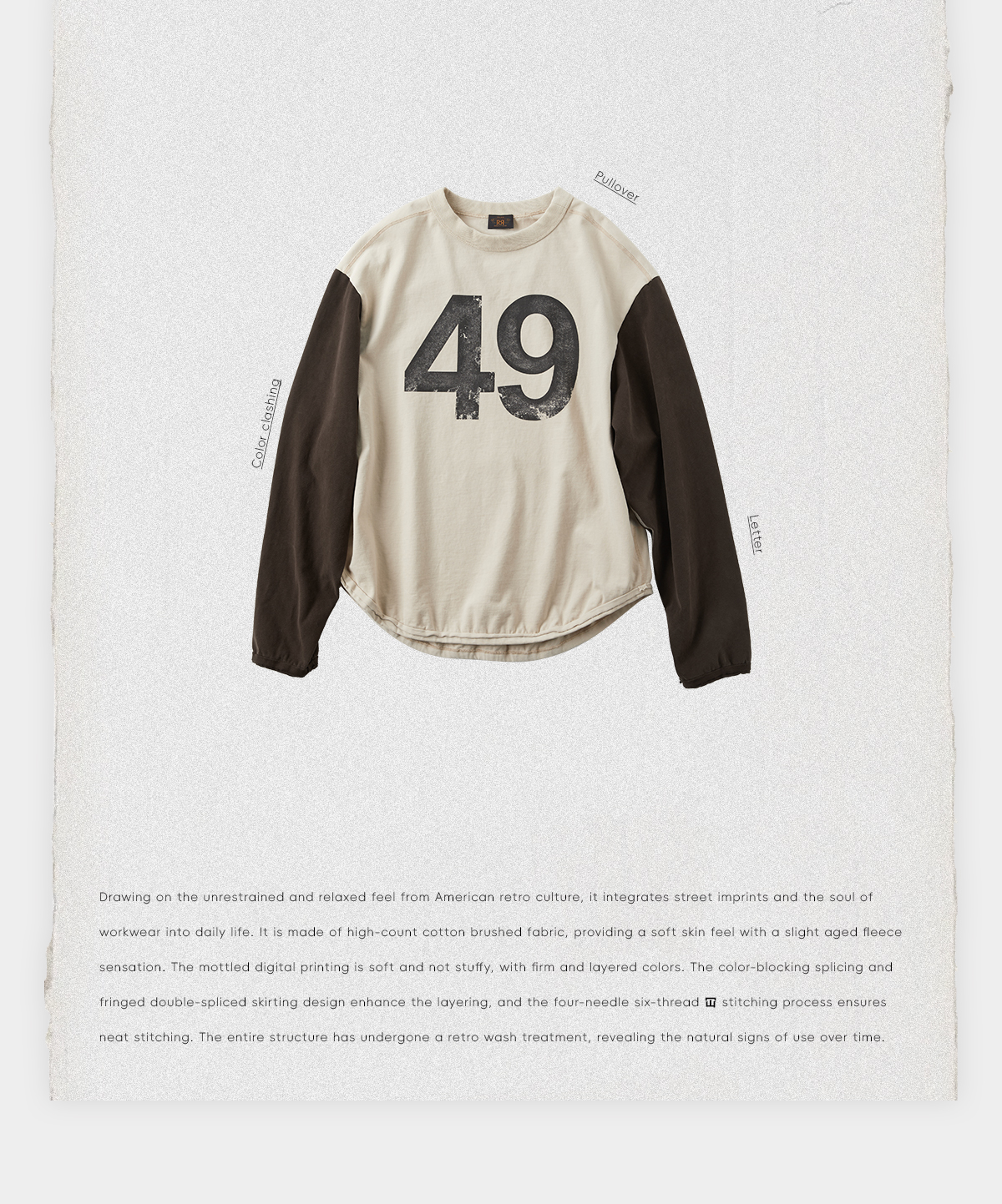 ROMI STUDIO“美式复古”全棉磨毛做旧撞色字母印花卫衣 RWCASY5974