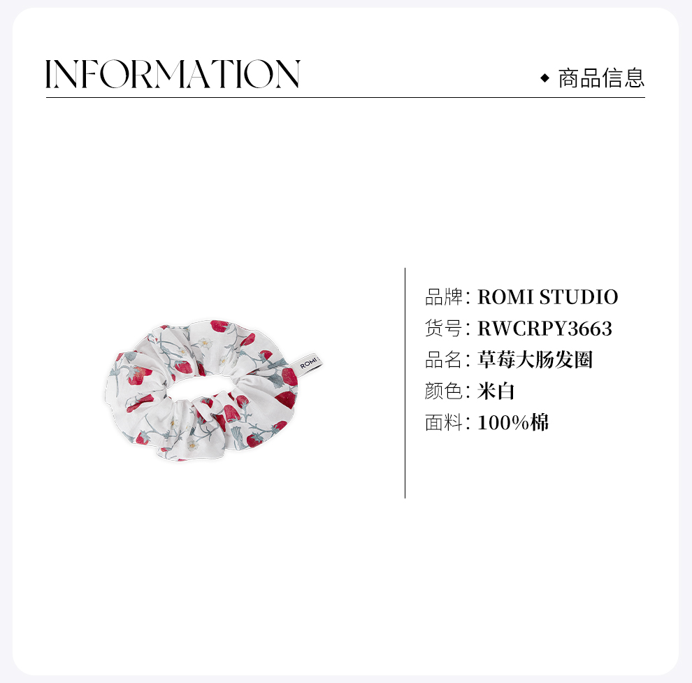ROMI STUDIO“法式复古”竹节棉手绘草莓印花复古发圈 RWCRPY3663(现货)