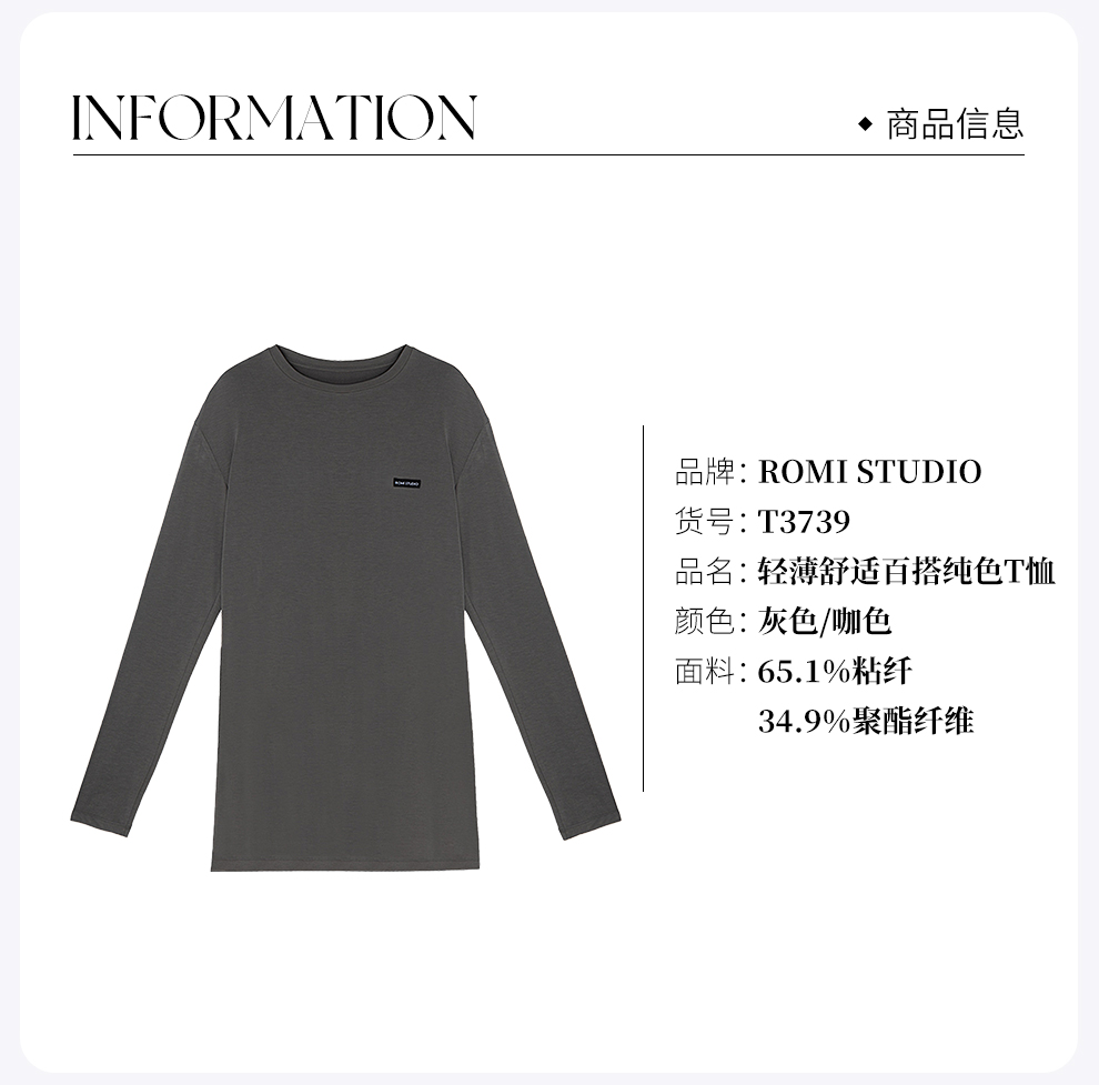 ROMI STUDIO“随性简约”早秋轻薄舒适百搭纯色打底长袖t恤T3739