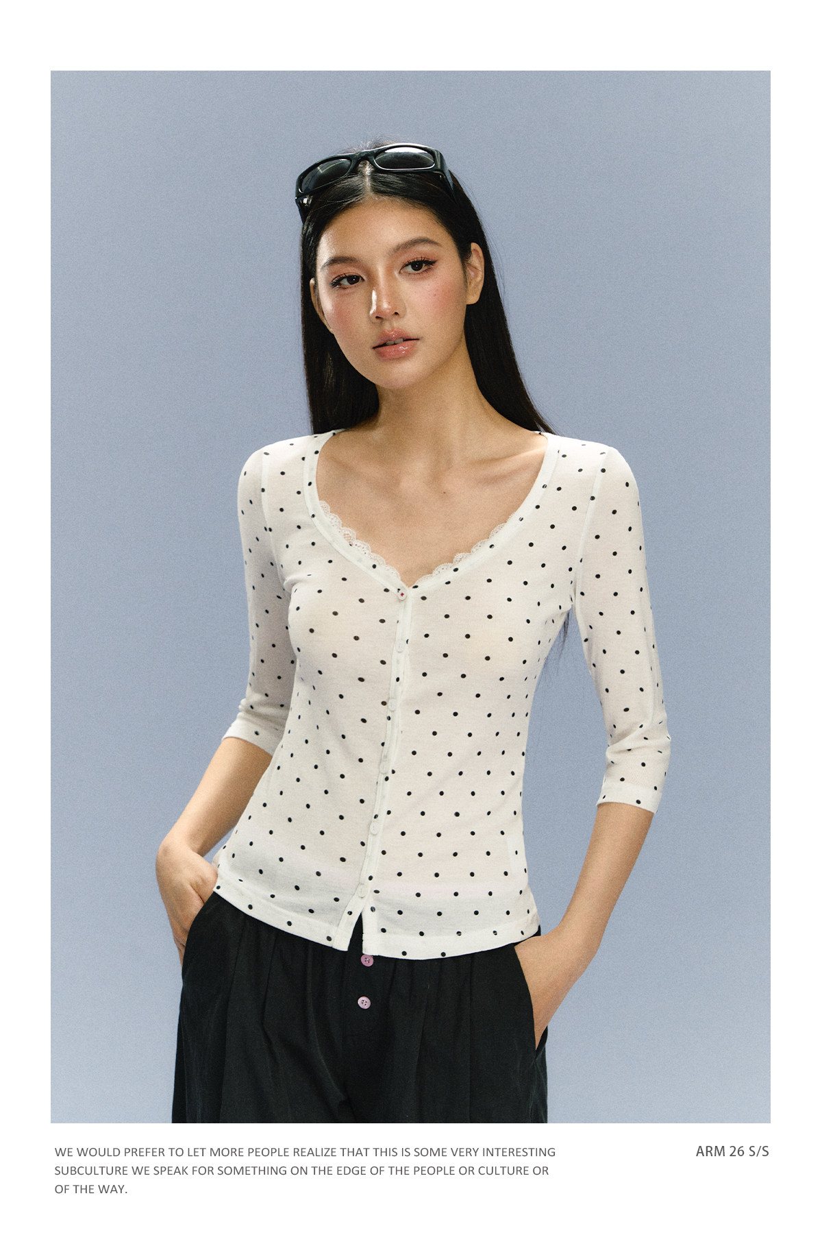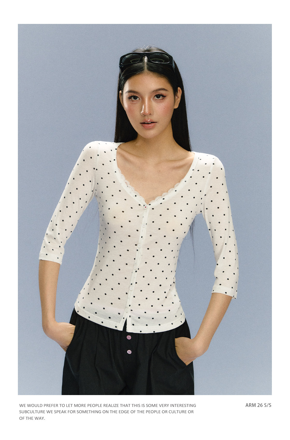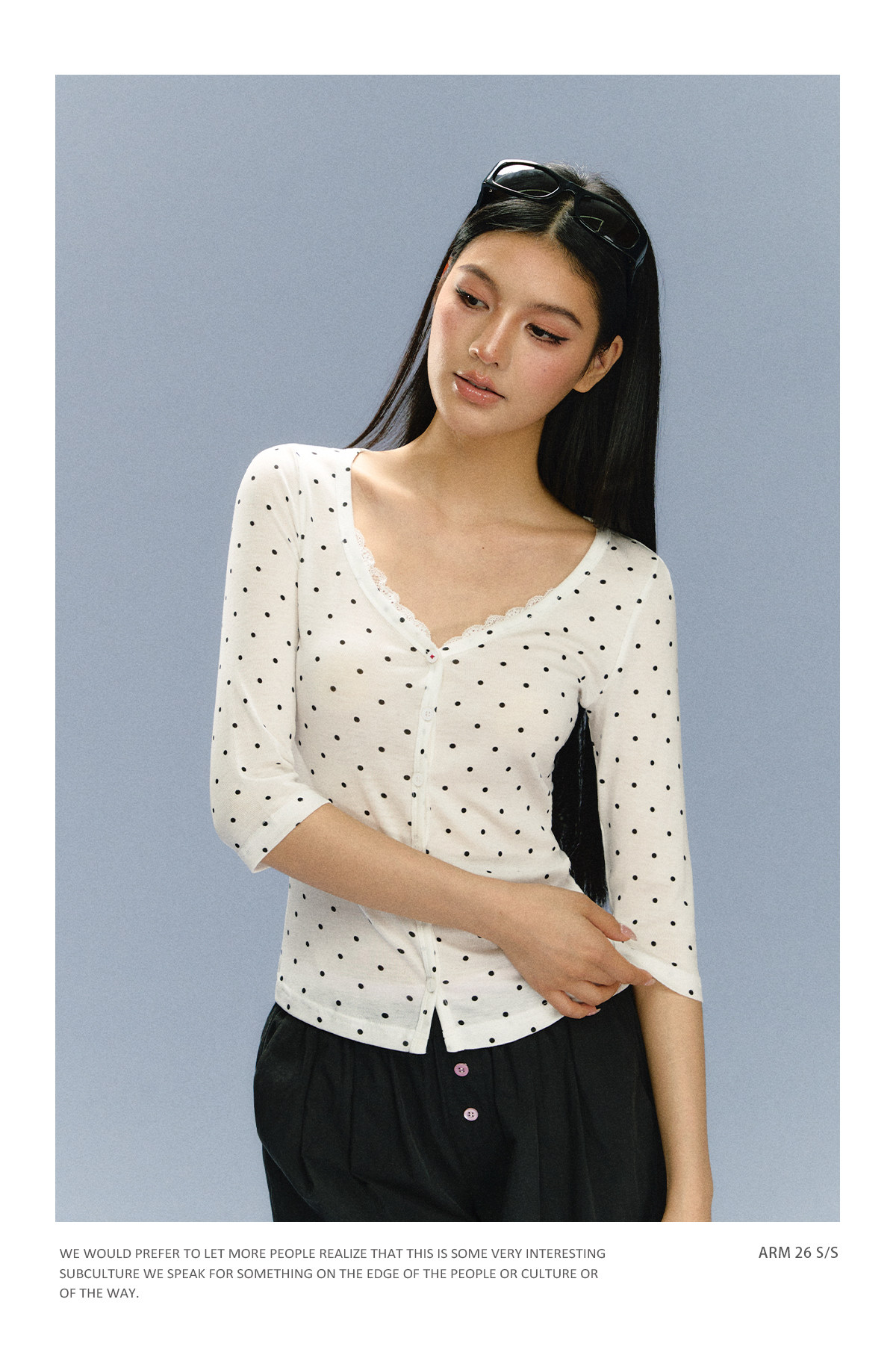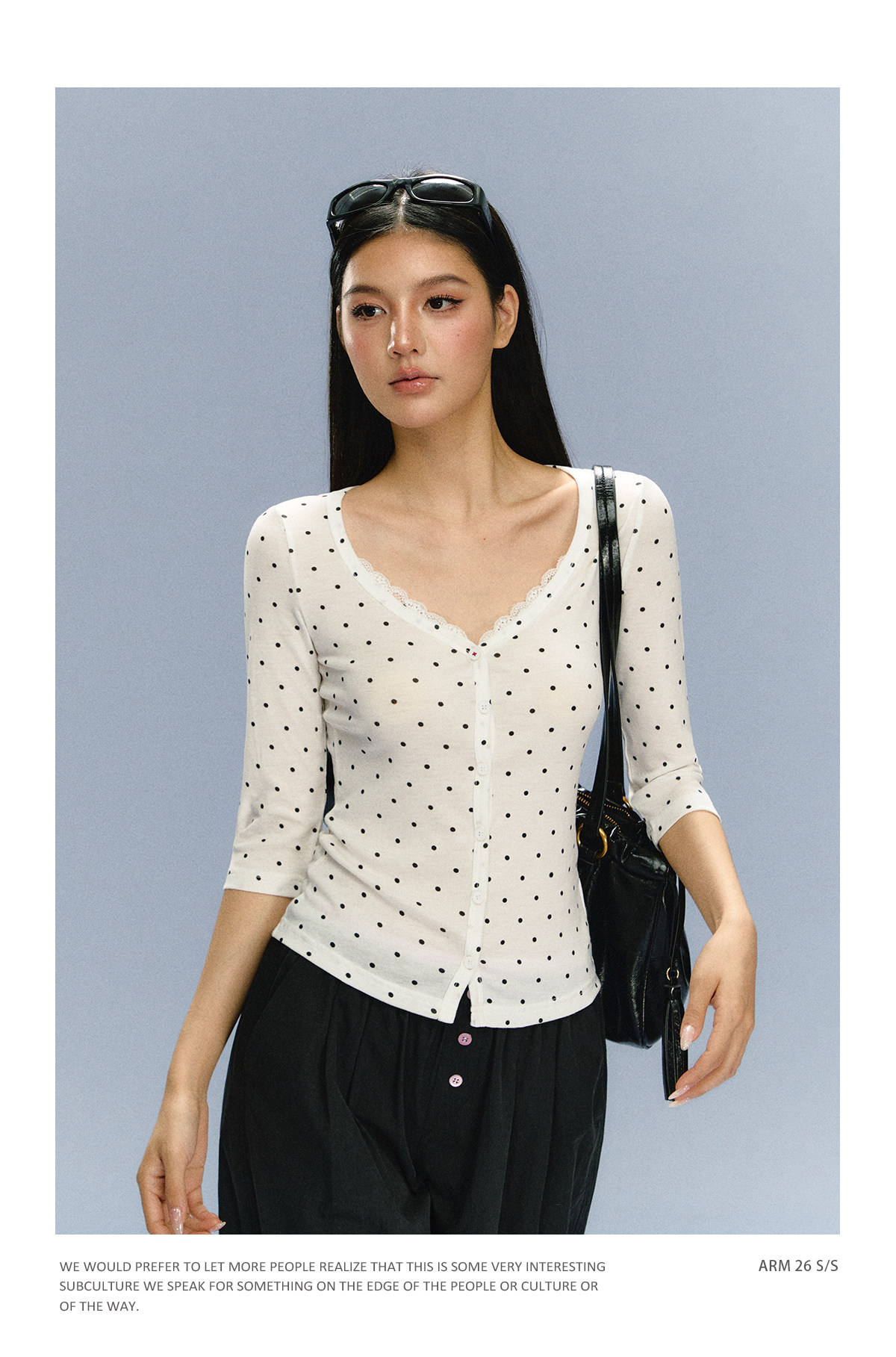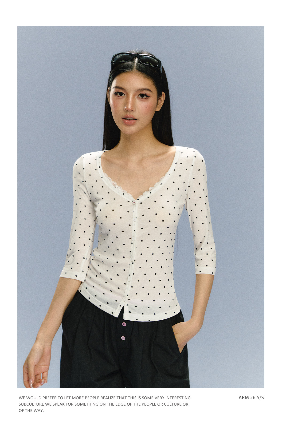 Ariseism 美式复古白色波点上衣短袖T恤女夏季新款修身上衣