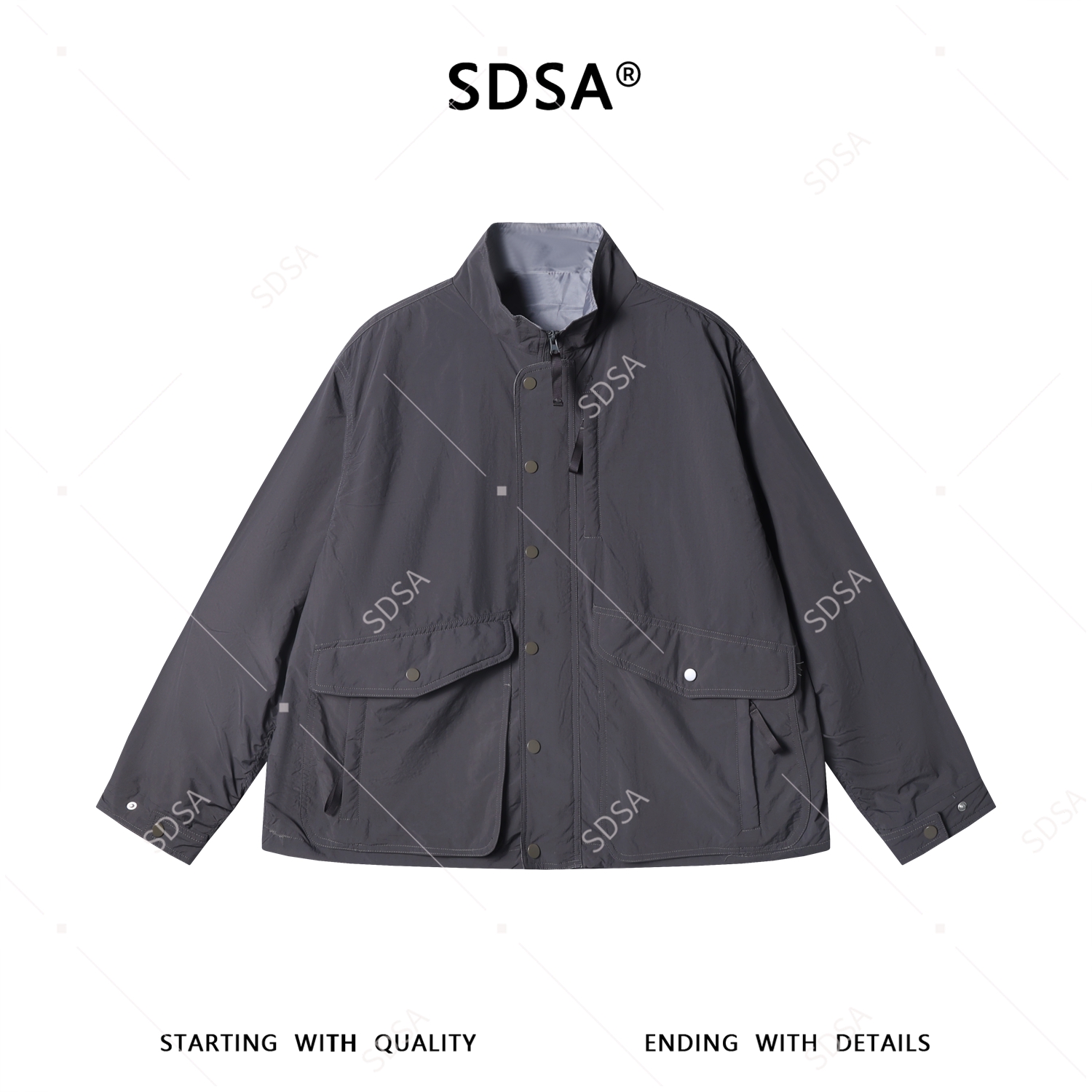 SDSA男装2026新款高贵轻奢韩版简约纯色大口袋立领夹克外套百搭