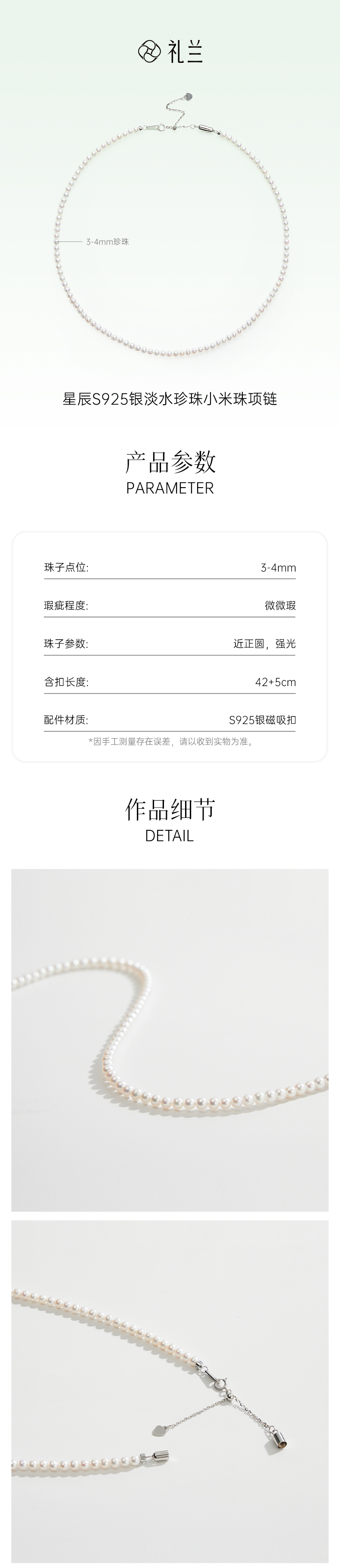 礼兰 星辰S925银淡水珍珠小米珠项链