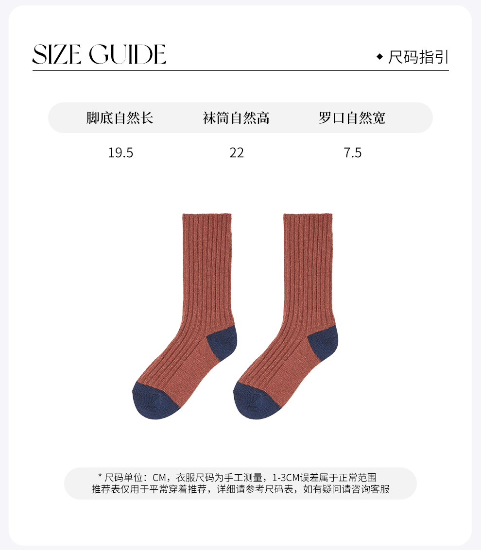 ROMI STUDIO“复古日系”羊毛混纺舒适弹力针织中筒袜RWCRP33928