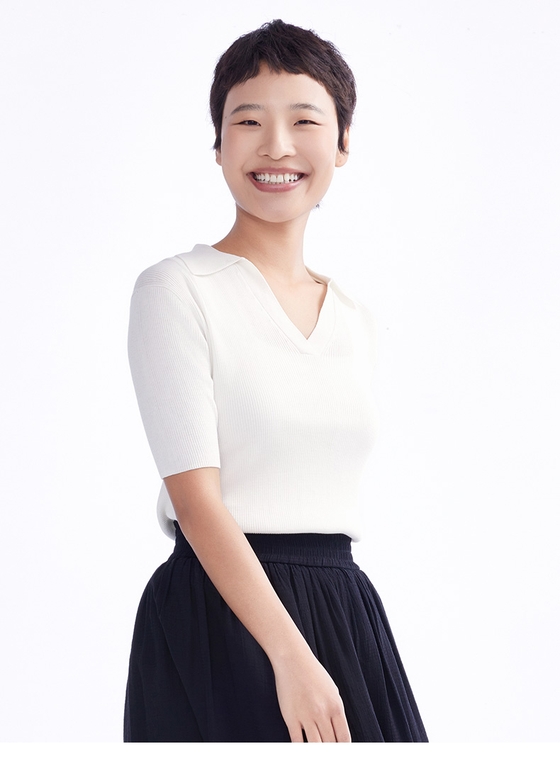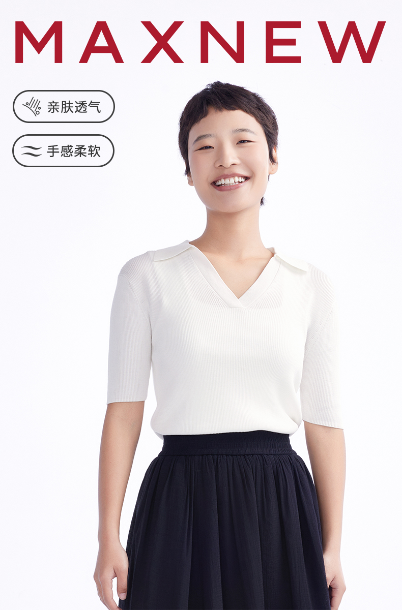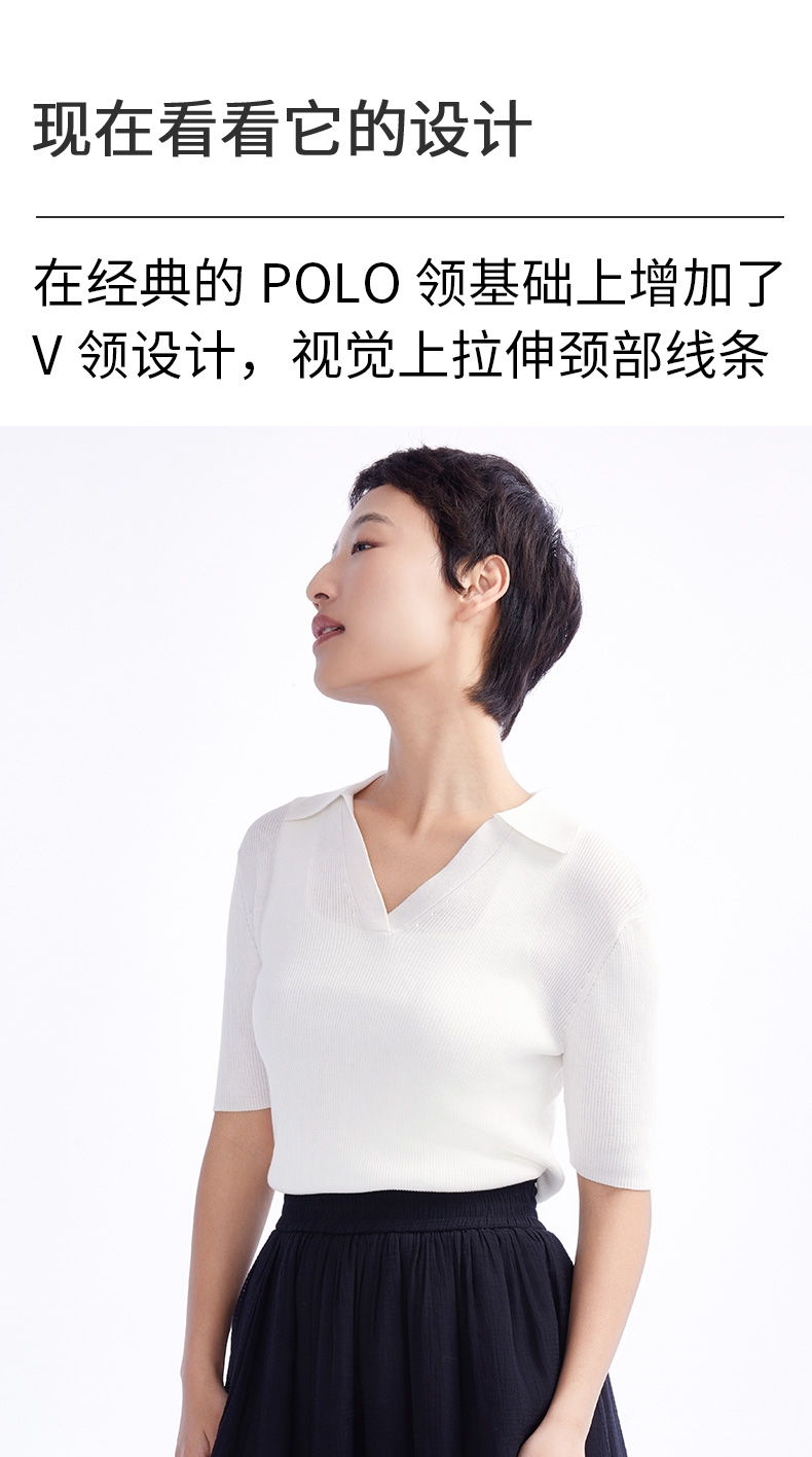 【毛衫】女装亲肤透气V领polo套衫 1N2222503