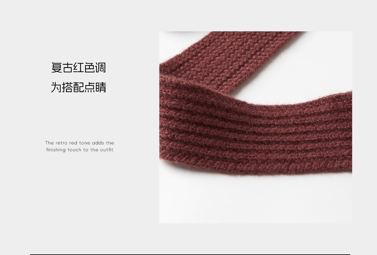 ROMI STUDIO“秋冬暖意”100%绵羊毛复古红毛织哑光围巾RWCAPT5409