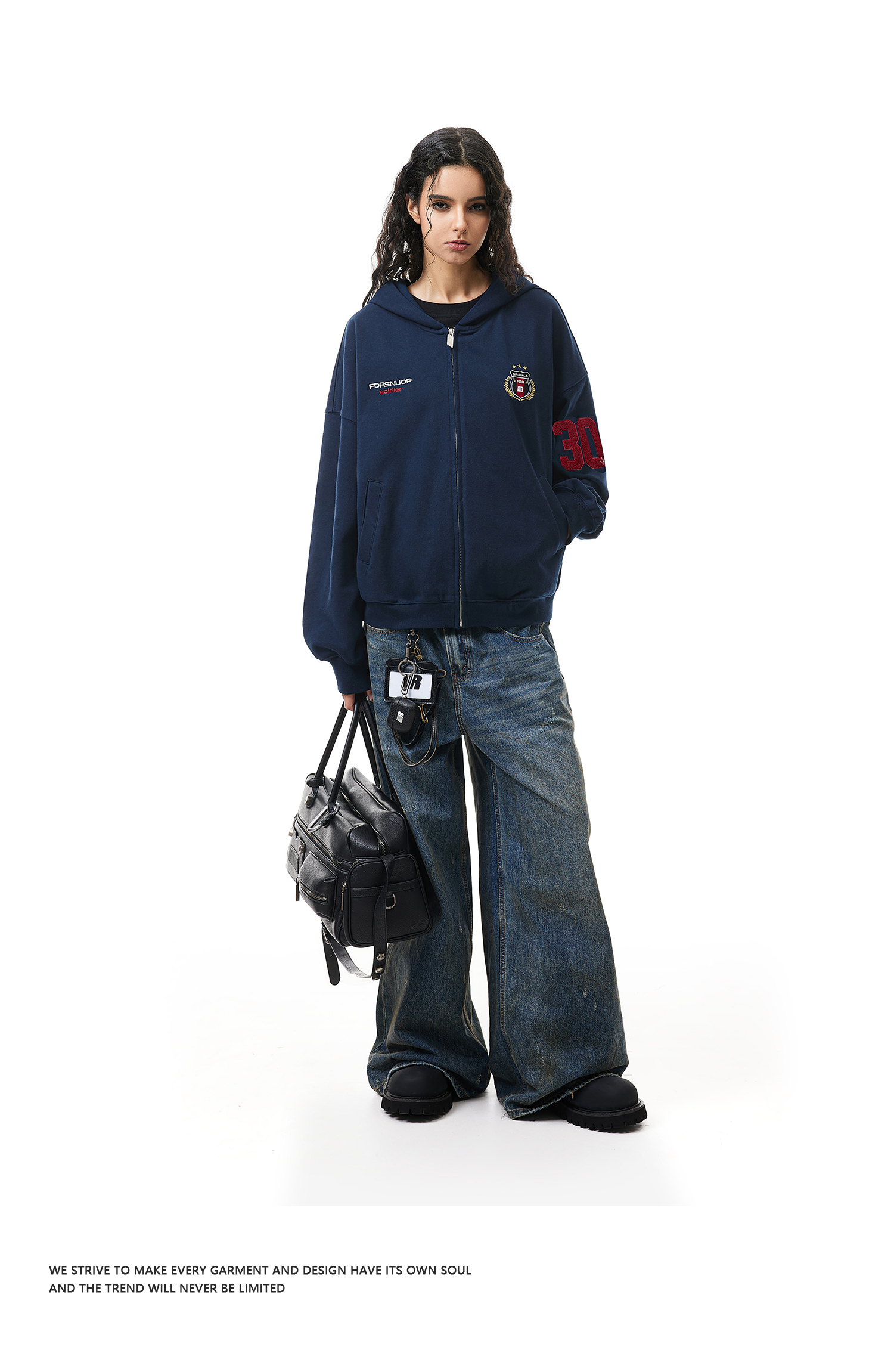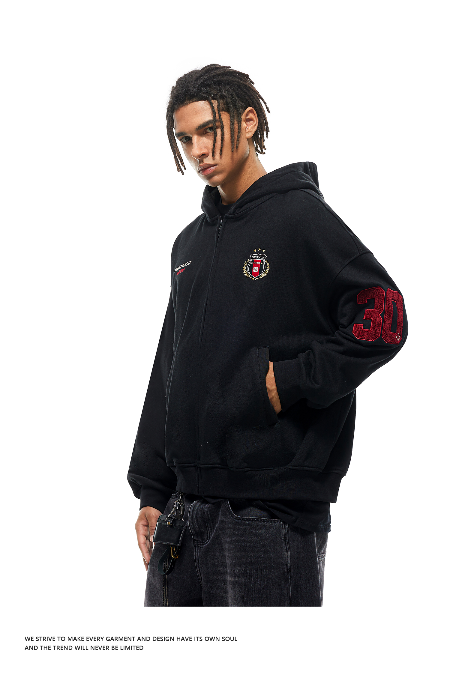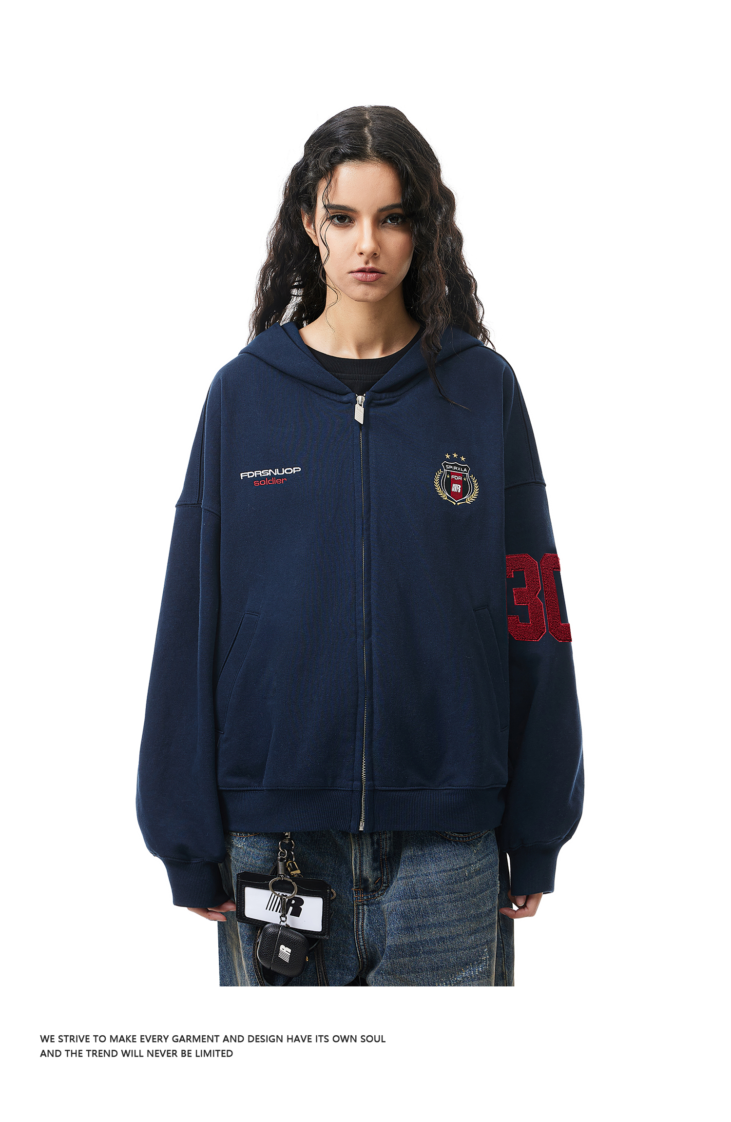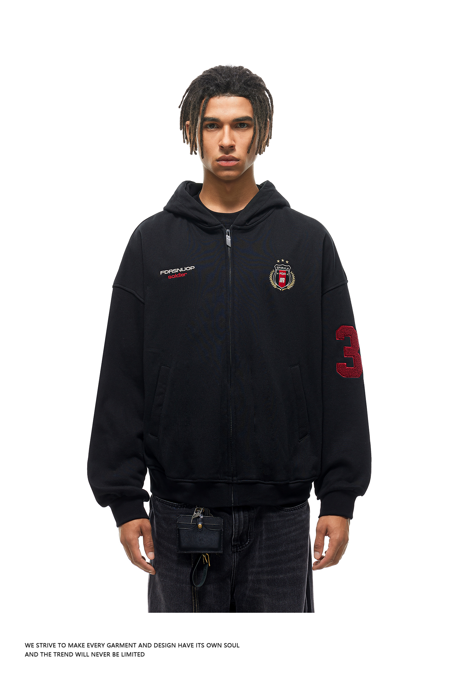 【限时7折】FDR官方店 03印花开衫加绒连帽卫衣外套男女春季美式情侣装上衣