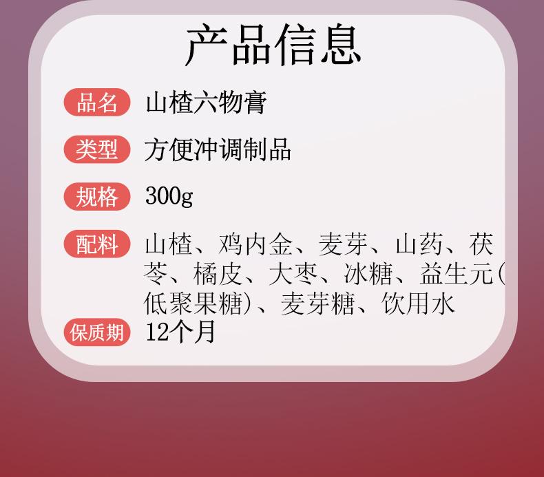 【官方正品】山楂六物膏300g 鲜果熬制老少皆宜 孩子营养便携冲泡