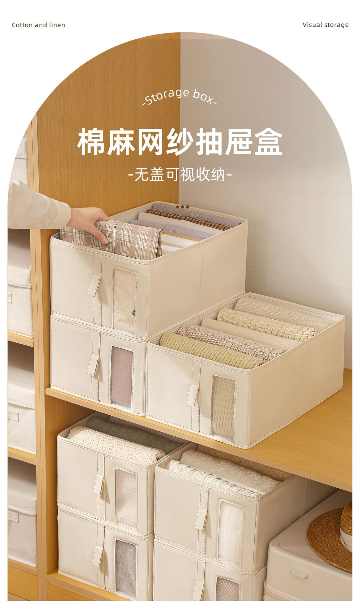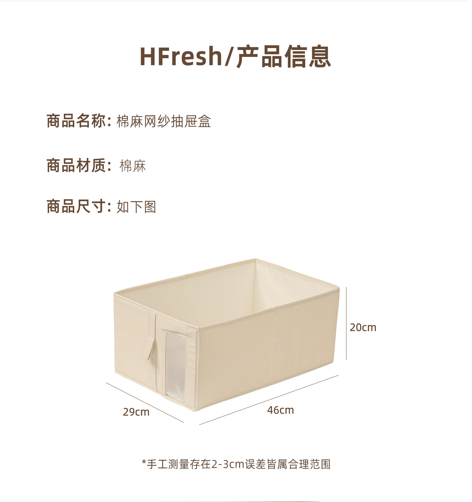【3种规格可选】娜家精品舒雅棉麻网纱抽屉盒