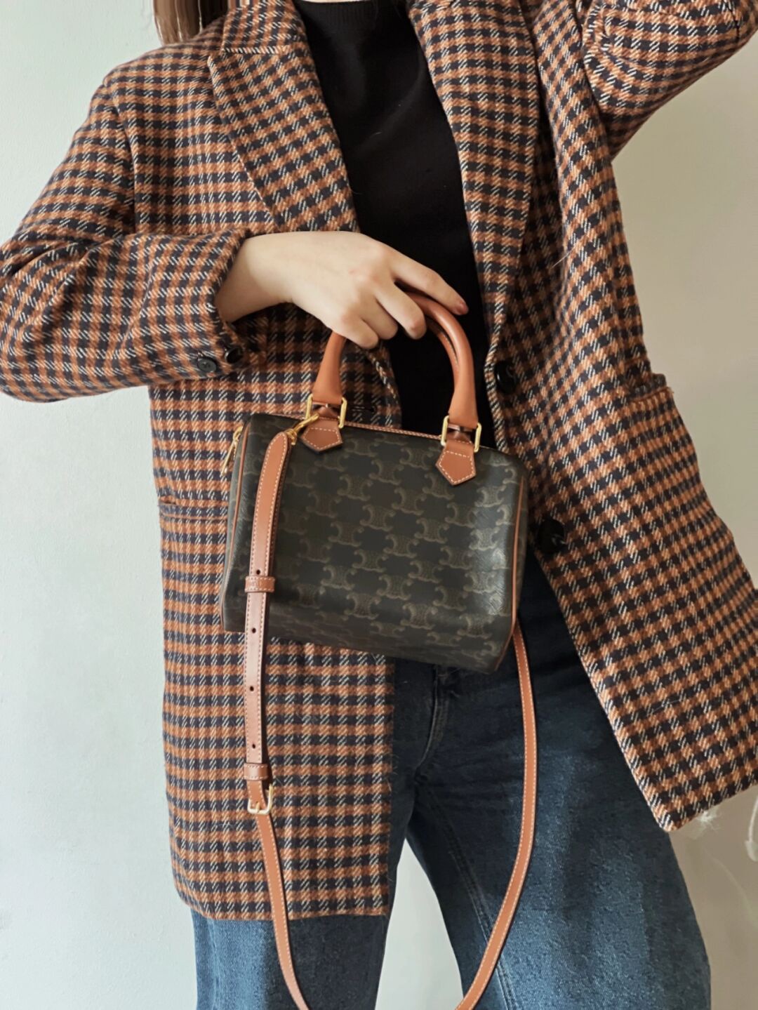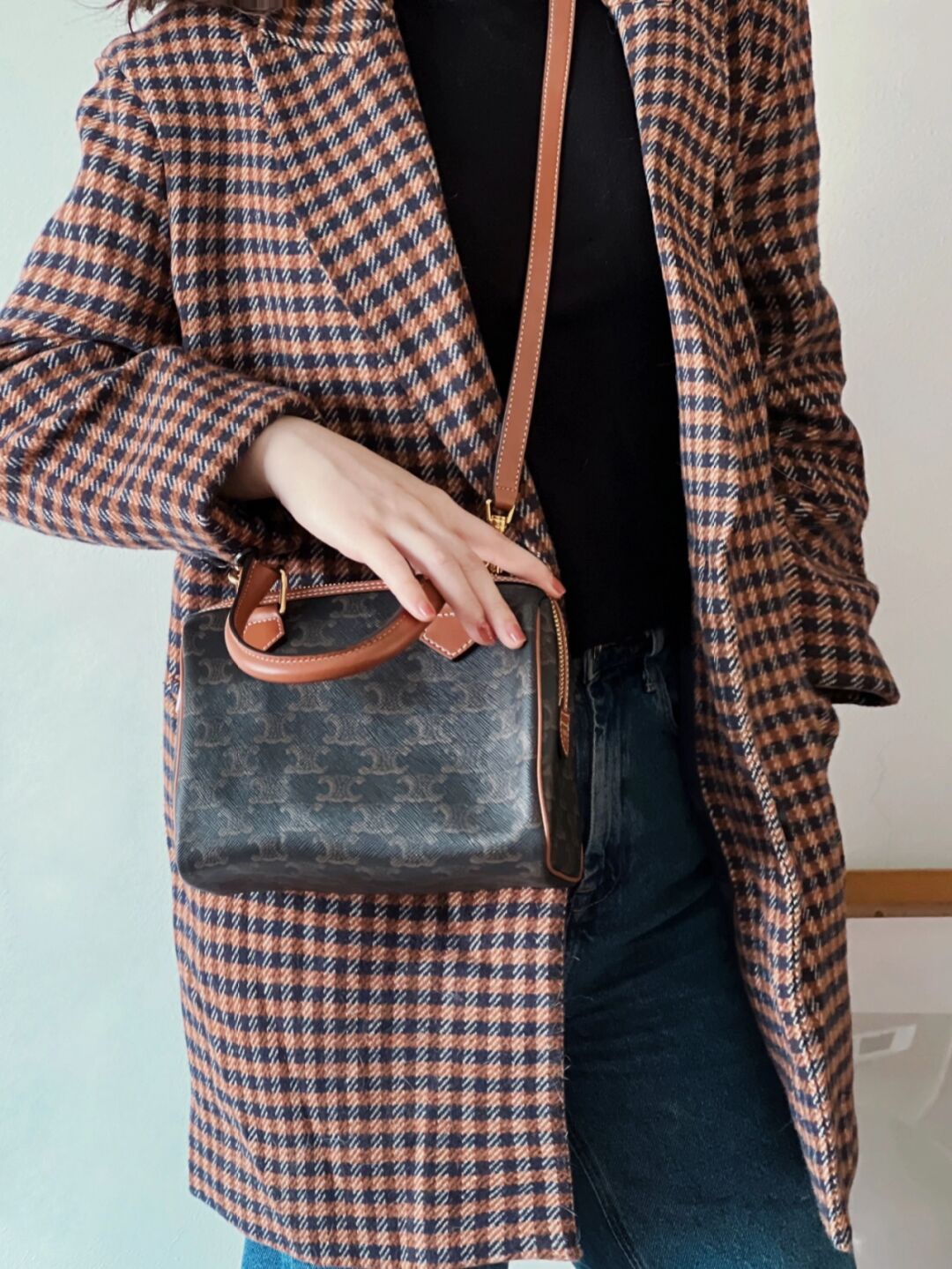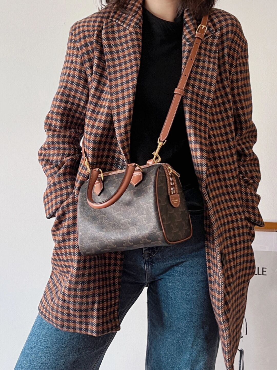 Cel22秋冬新品 凯旋门小号波士顿枕头包出皮质和织物材质啦!,皮质和织物材质➕融入了 Ce所有经典元素,复古味道更足 更有质感!!满满的高级感高颜值的复古文艺气息