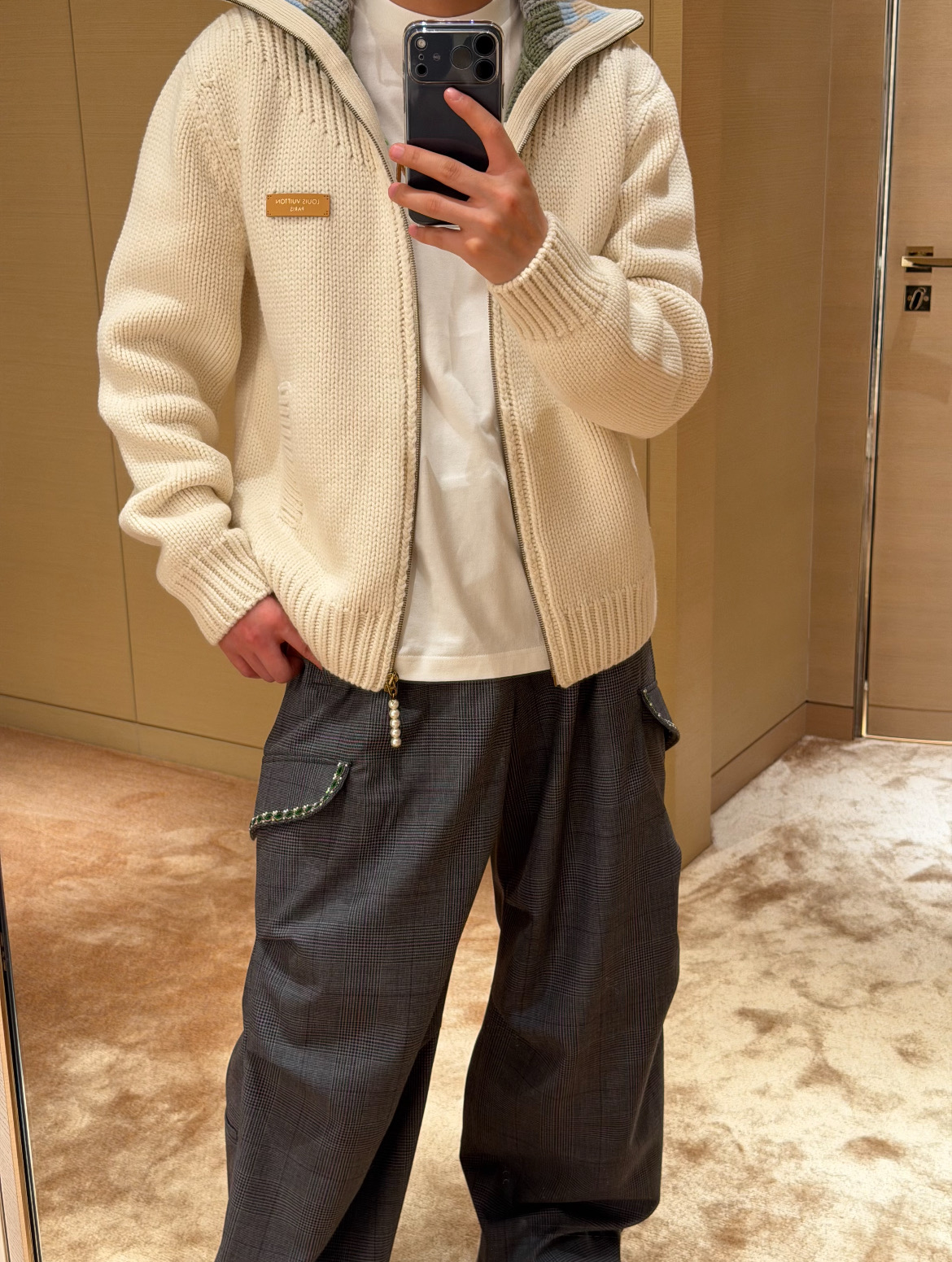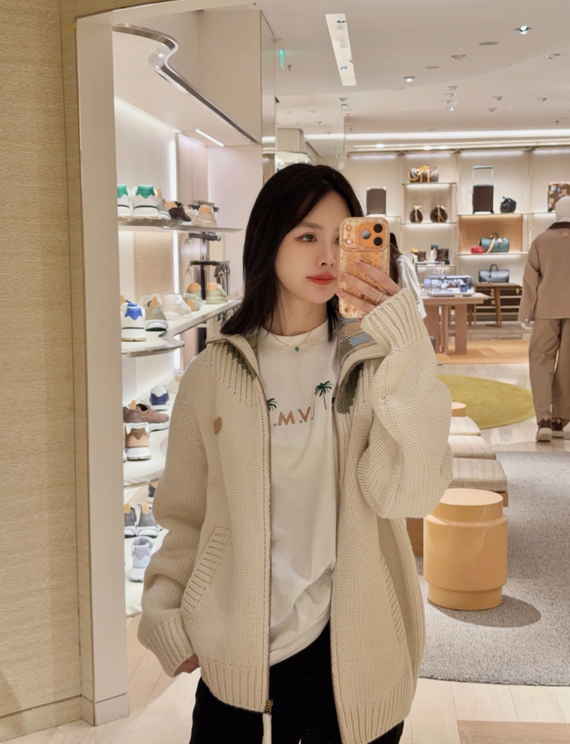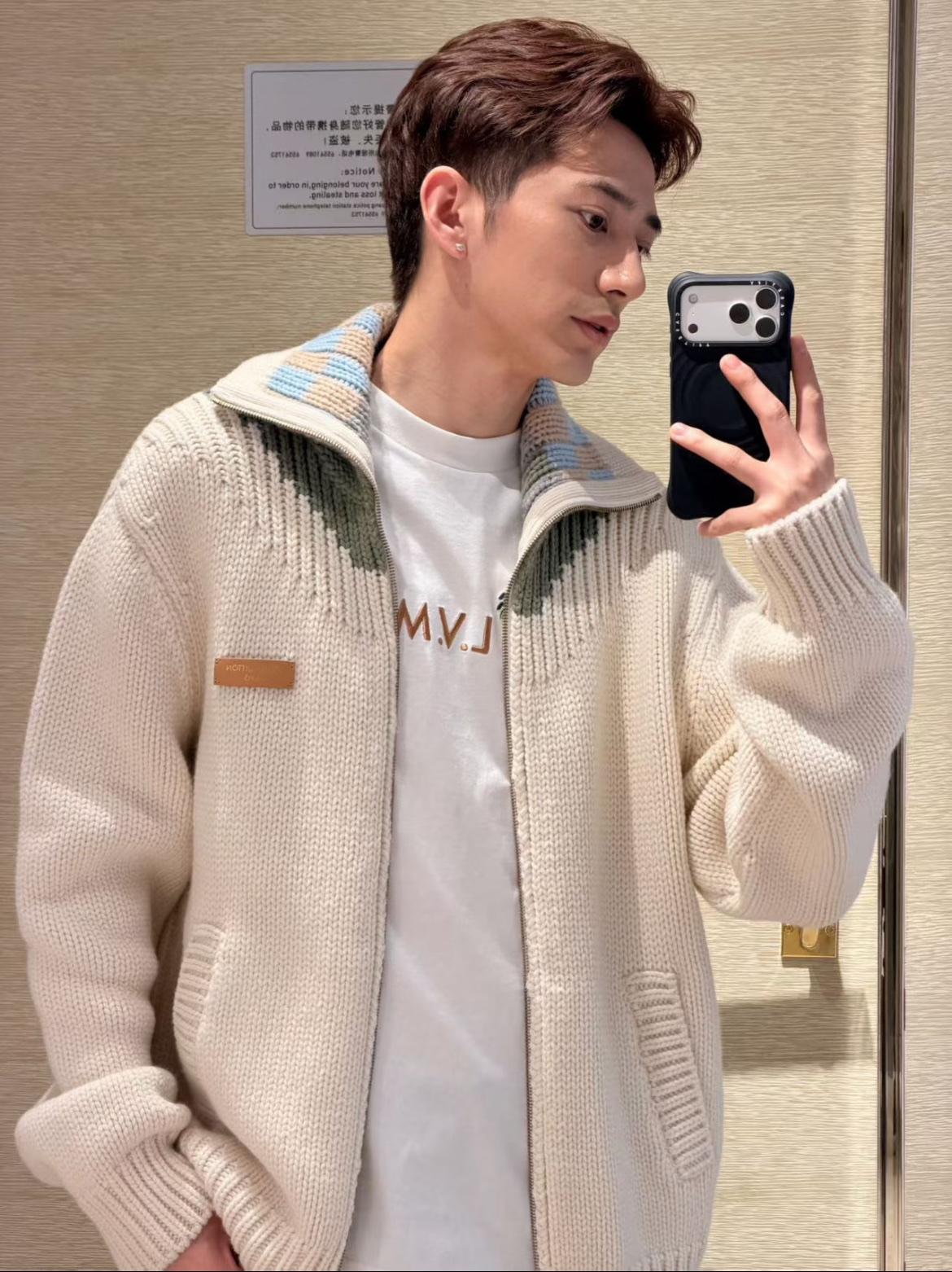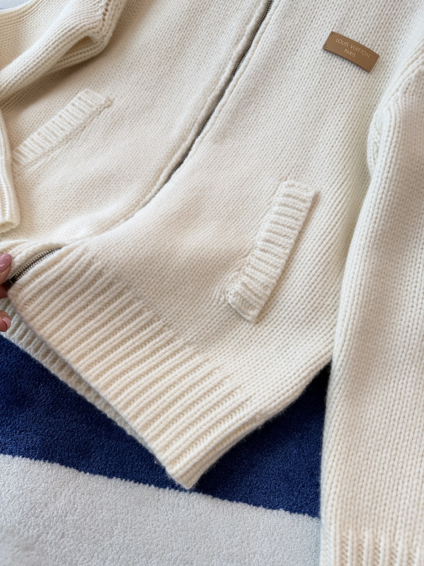 【新品上线】新品🆕爆款针织开衫😉 衣领饰以彩色 Damier 图案,背部则缀有同色系纹理质感 Vuitton 签名标识〰️细节处包括珍珠拉链头与胸前皮革标识贴片💫时髦感拉满✨有质感耐穿🔜具有柔软保暖的舒适感😜上身效果简直绝绝子👍完美诠释了什么叫高级感与时尚感的结合👌YB定制特种纱线🧶真的是一整个爱住😍基础百搭,轻松打造出慵懒随性的穿搭体验🔜宽松版型 男女同款 码数SML