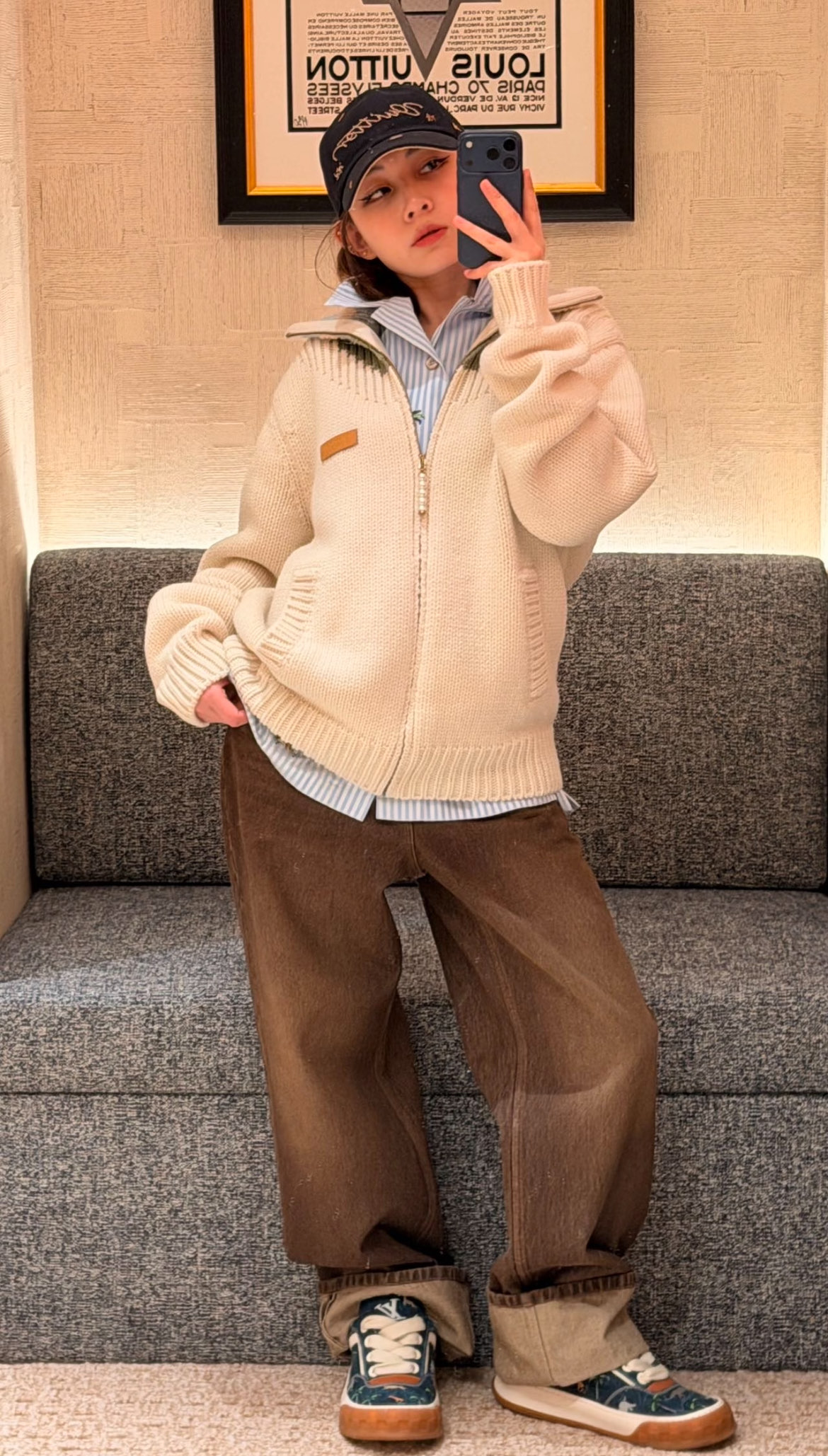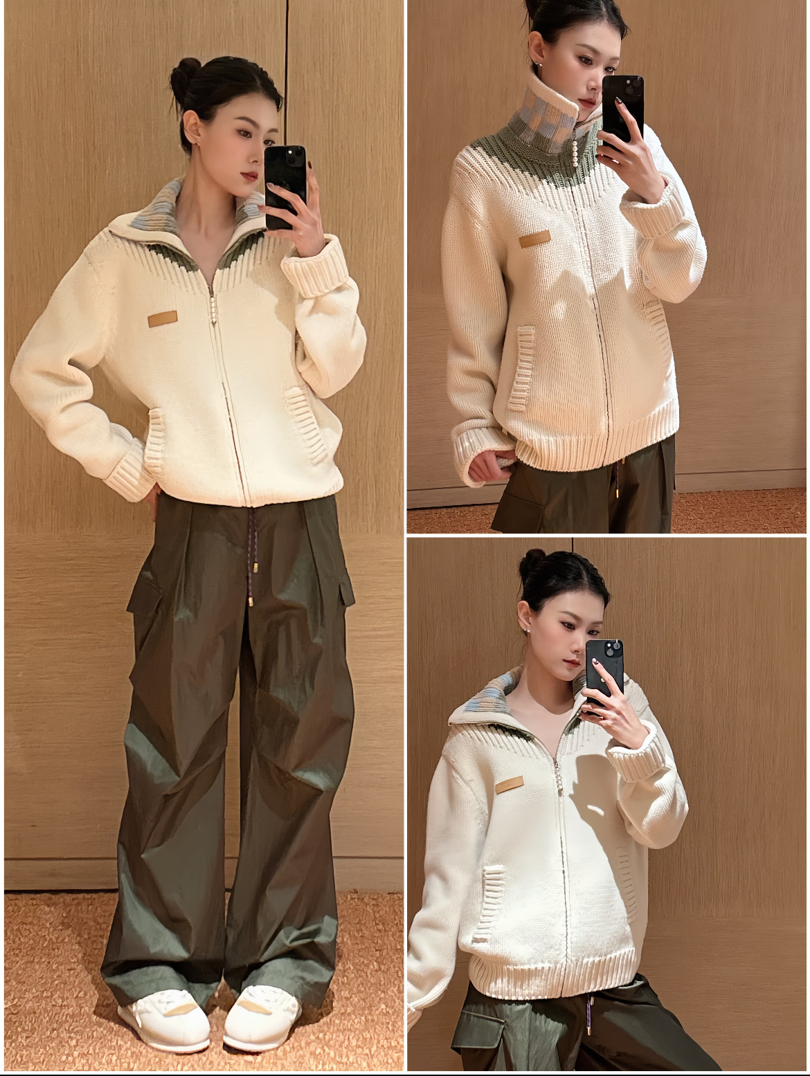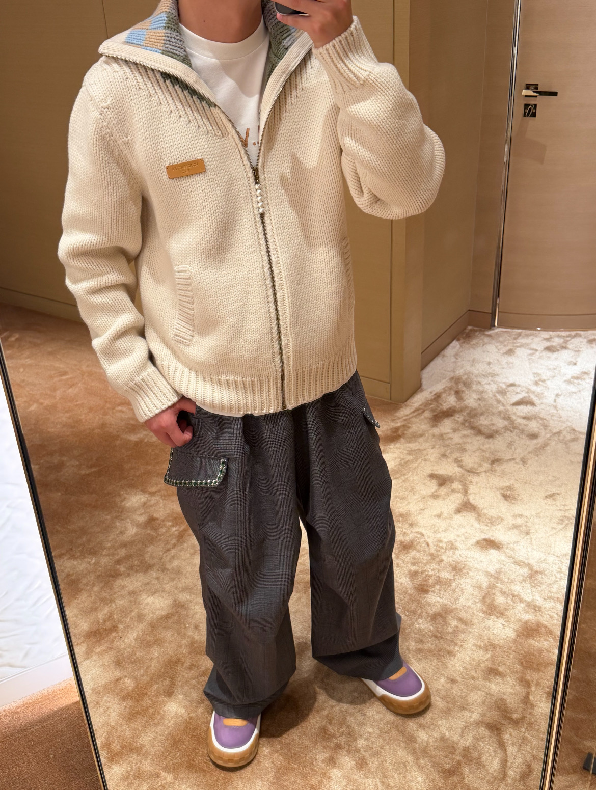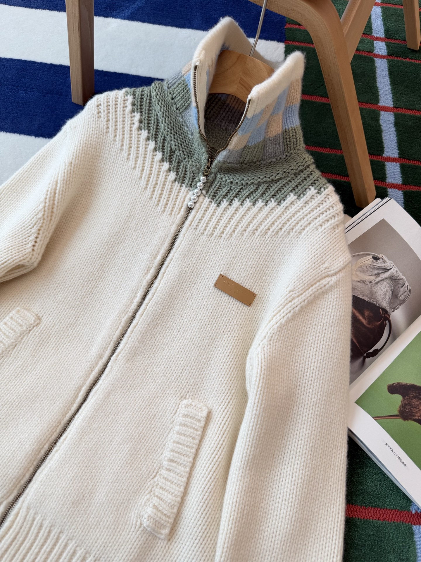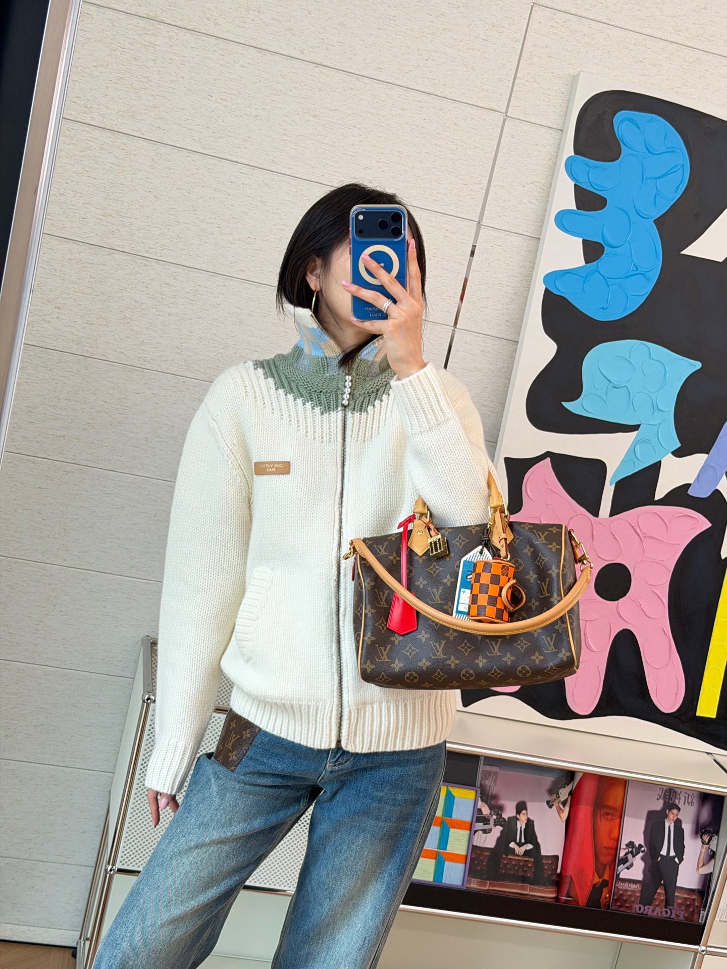 【新品上线】新品🆕爆款针织开衫😉 衣领饰以彩色 Damier 图案,背部则缀有同色系纹理质感 Vuitton 签名标识〰️细节处包括珍珠拉链头与胸前皮革标识贴片💫时髦感拉满✨有质感耐穿🔜具有柔软保暖的舒适感😜上身效果简直绝绝子👍完美诠释了什么叫高级感与时尚感的结合👌YB定制特种纱线🧶真的是一整个爱住😍基础百搭,轻松打造出慵懒随性的穿搭体验🔜宽松版型 男女同款 码数SML