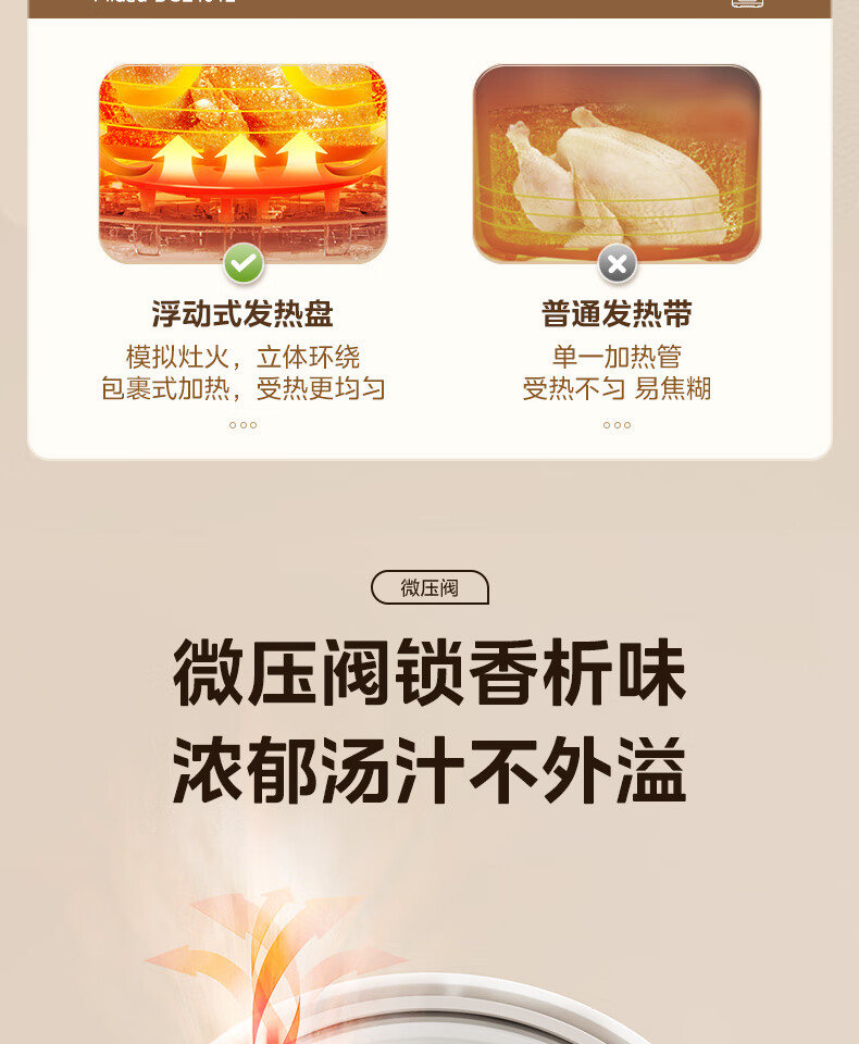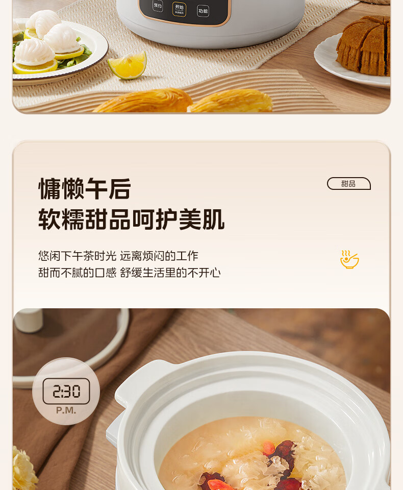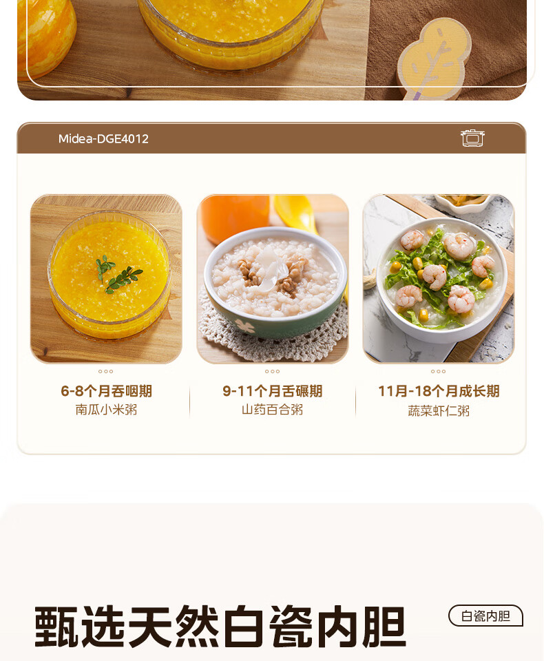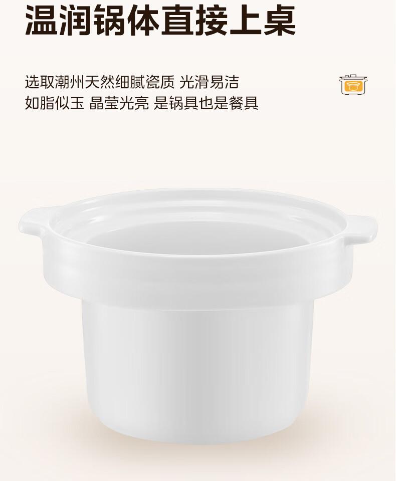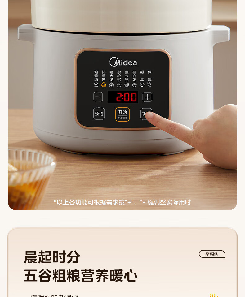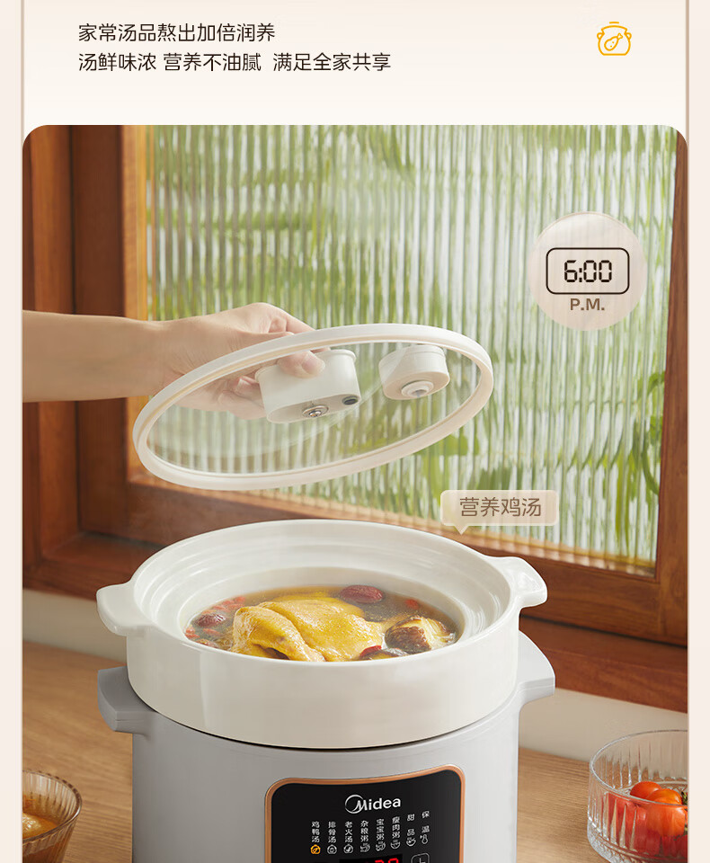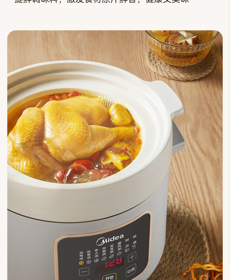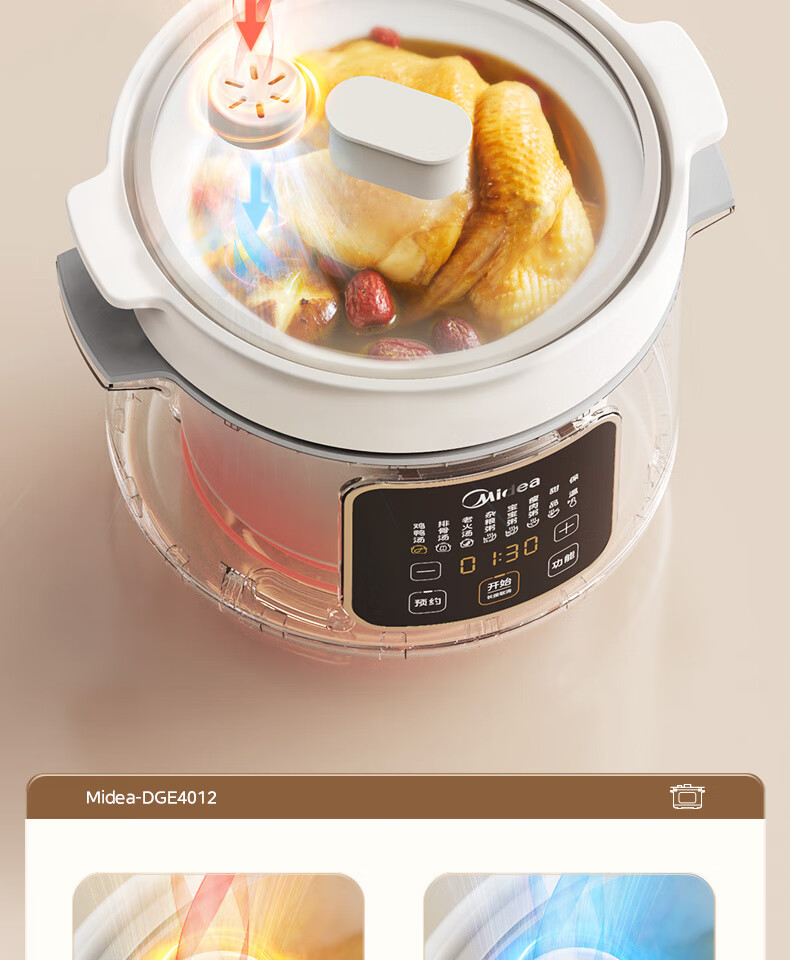 美的(Midea)电炖锅微压4L定时预约DGE4012彩陶瓷内胆快炖煮粥烧汤甜品多功能大容量锁气 白色