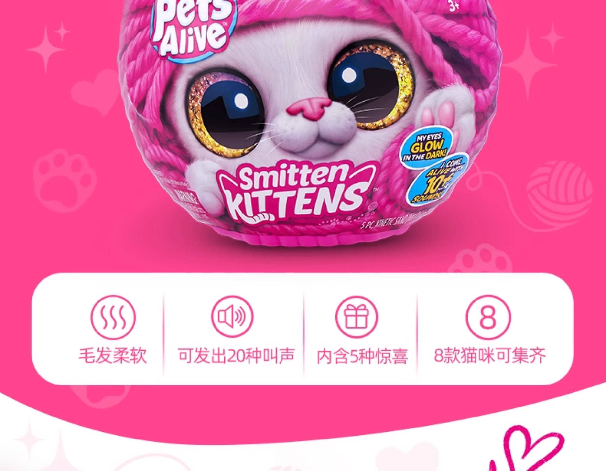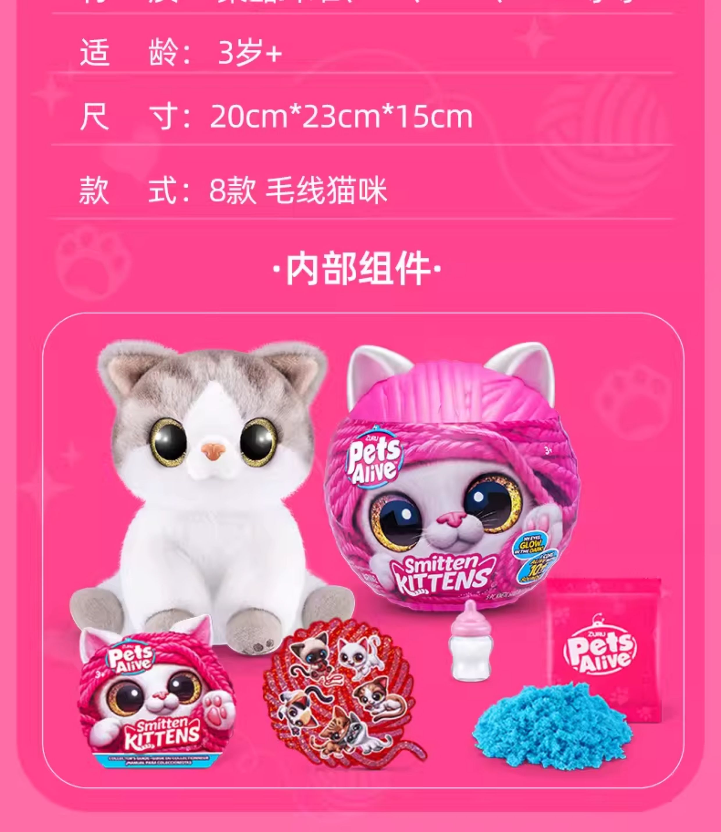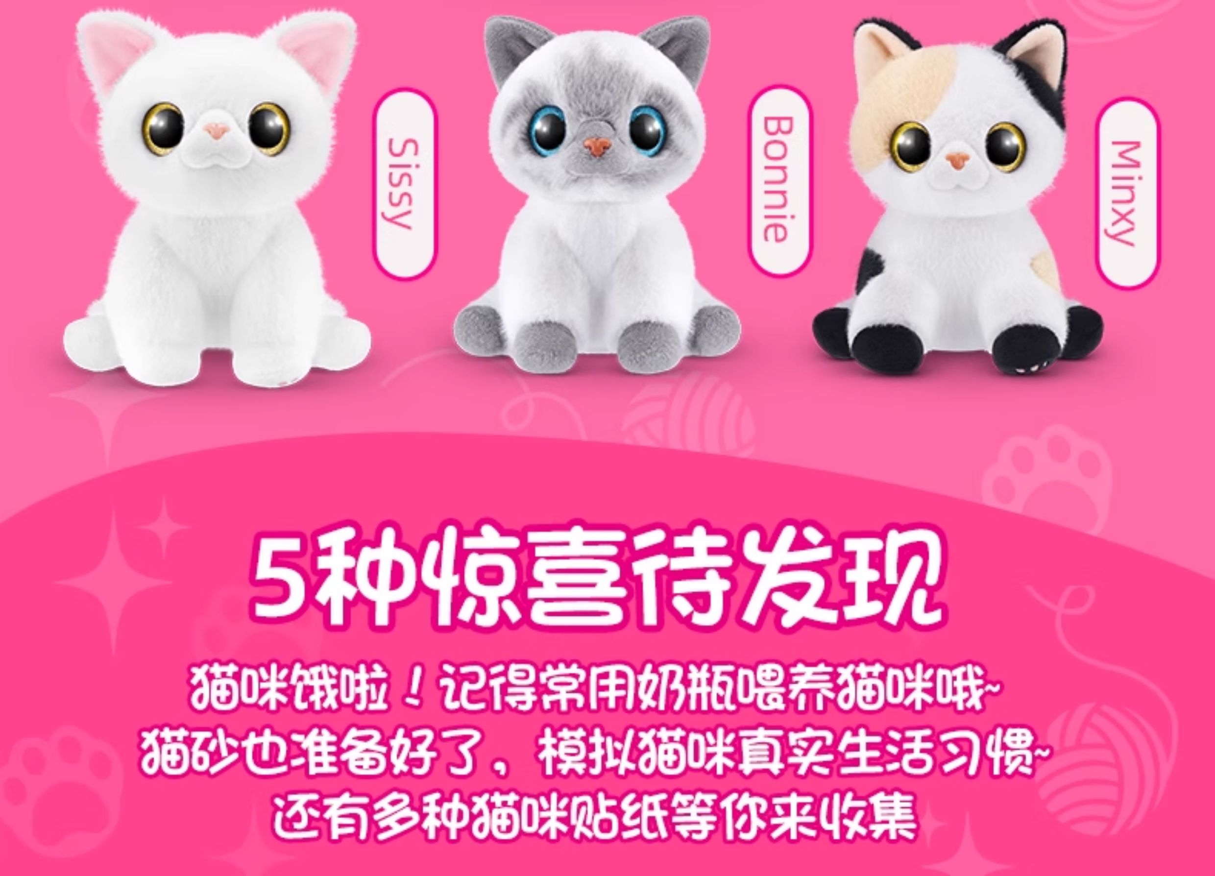 zuru佩特宠物毛线猫咪女孩卡通玩偶发声儿童玩具公仔生日礼物 盲盒产品拆封后 不支持七天无理由