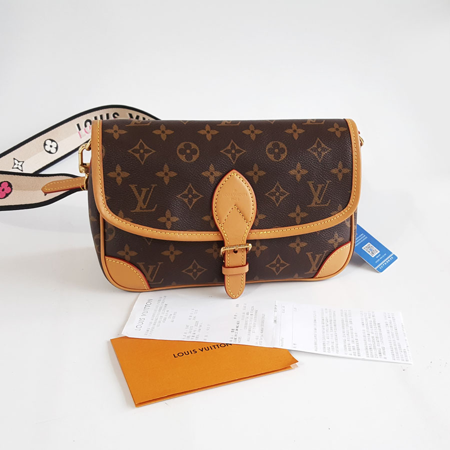 【95新】LV路易威登DIANE手袋M45985老花黑肩带DIANE法棍包单肩包女士160326AK02