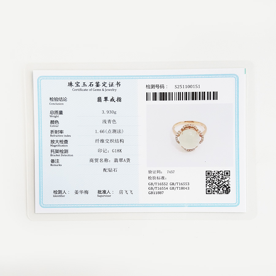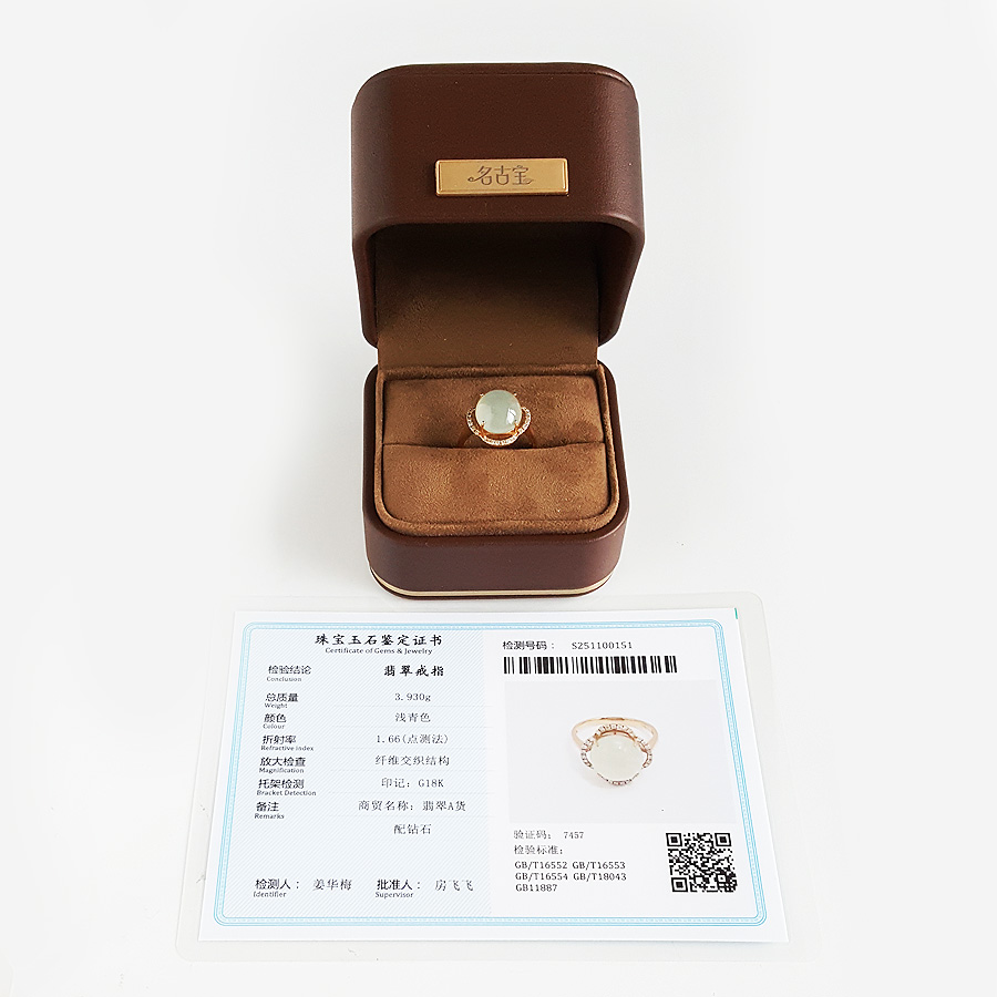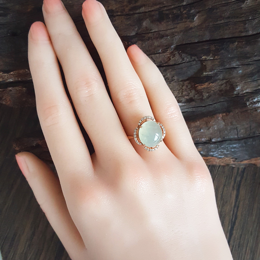 【天然正品】A货翡翠AU750玫瑰金镶钻镶天然细腻花朵造型晴水冰种蛋面翡翠戒指12.1*10.9MM(皆取最大值)14号(戒圈可改)女士281025AH71
