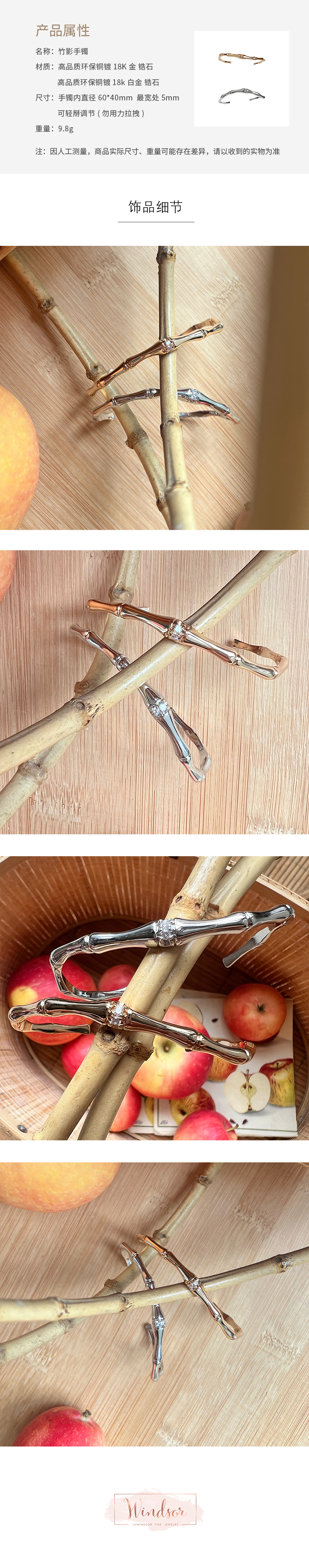 LHWINDSO 温莎珠宝 竹影手镯