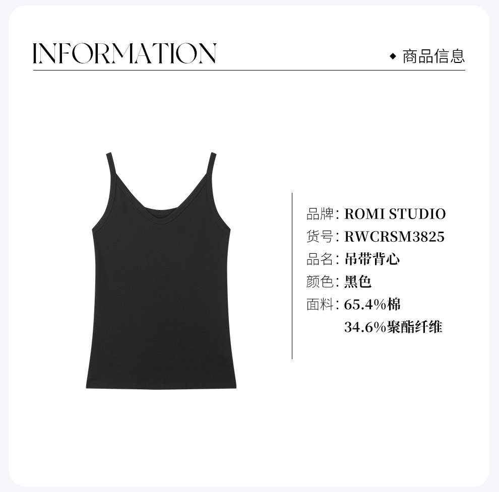 ROMI STUDIO“简约基础”轻柔弹力棉质弧形领细吊带背心 RWCRSM3825【