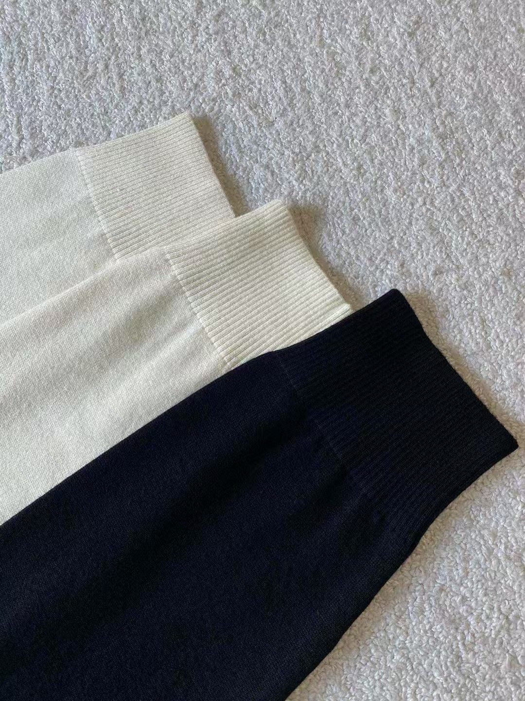 整体由高弹丝进行成衣链接,通过特殊的洗水工艺使衣身有弹力之余,不会因为洗涤过程中造成衣松垮。细腻手感,偏紧实的织法,比松散织法的毛衣更不易起球;纱线触感偏软糯风格,亲肤轻柔。