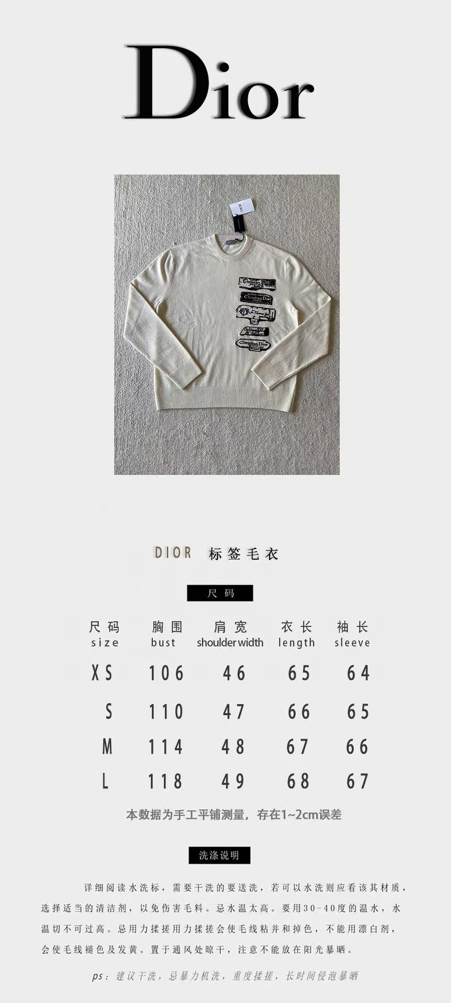 Dio*r…❤️原版级❤️标本绣花圆领毛衣