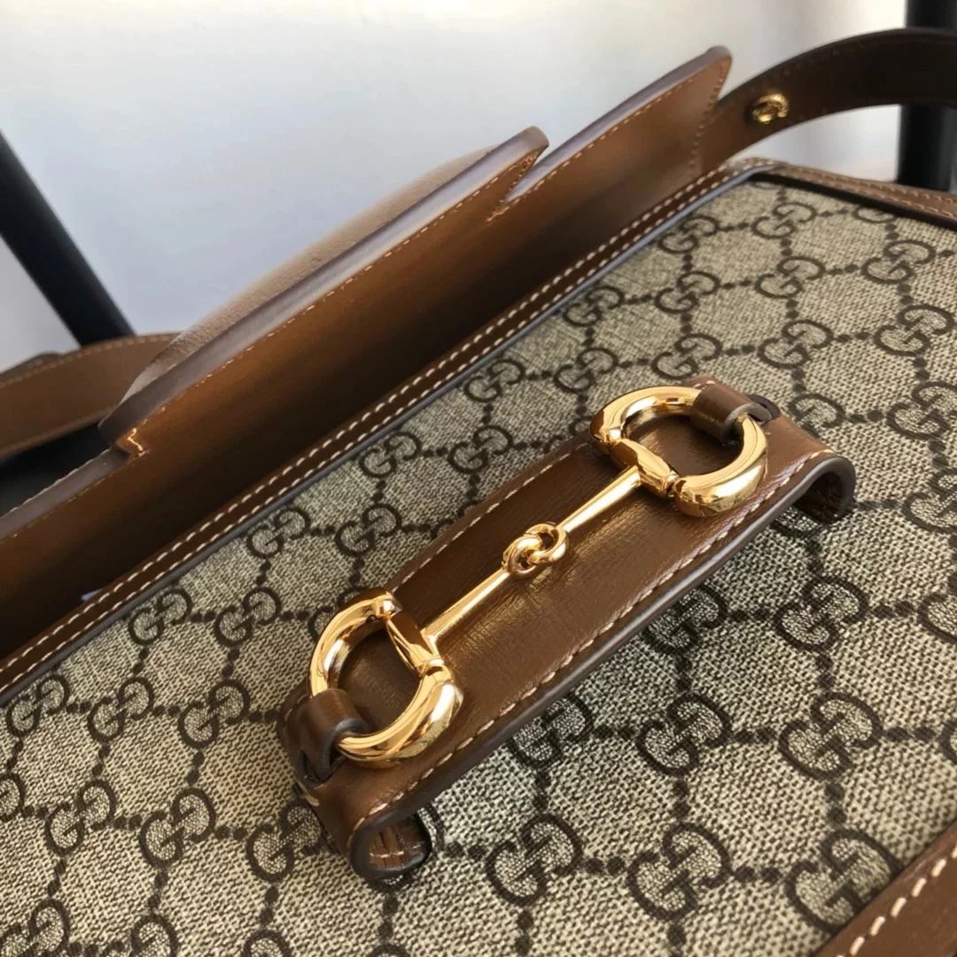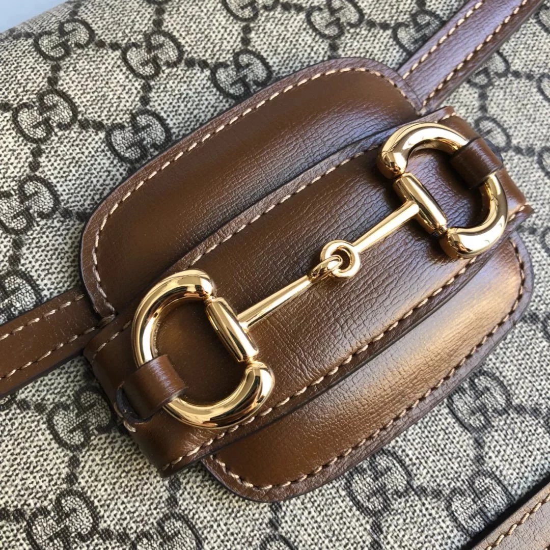 古家 | 1955马鞍包 |LL 1955 Horsebit Bag这个_马衔扣标志性设计元素,棕色皮配上受欢迎pvc元素,肩带长短可以调节,可以在肩背和斜挎之间自由转换,两个字概括 尺寸 25*18*8cm