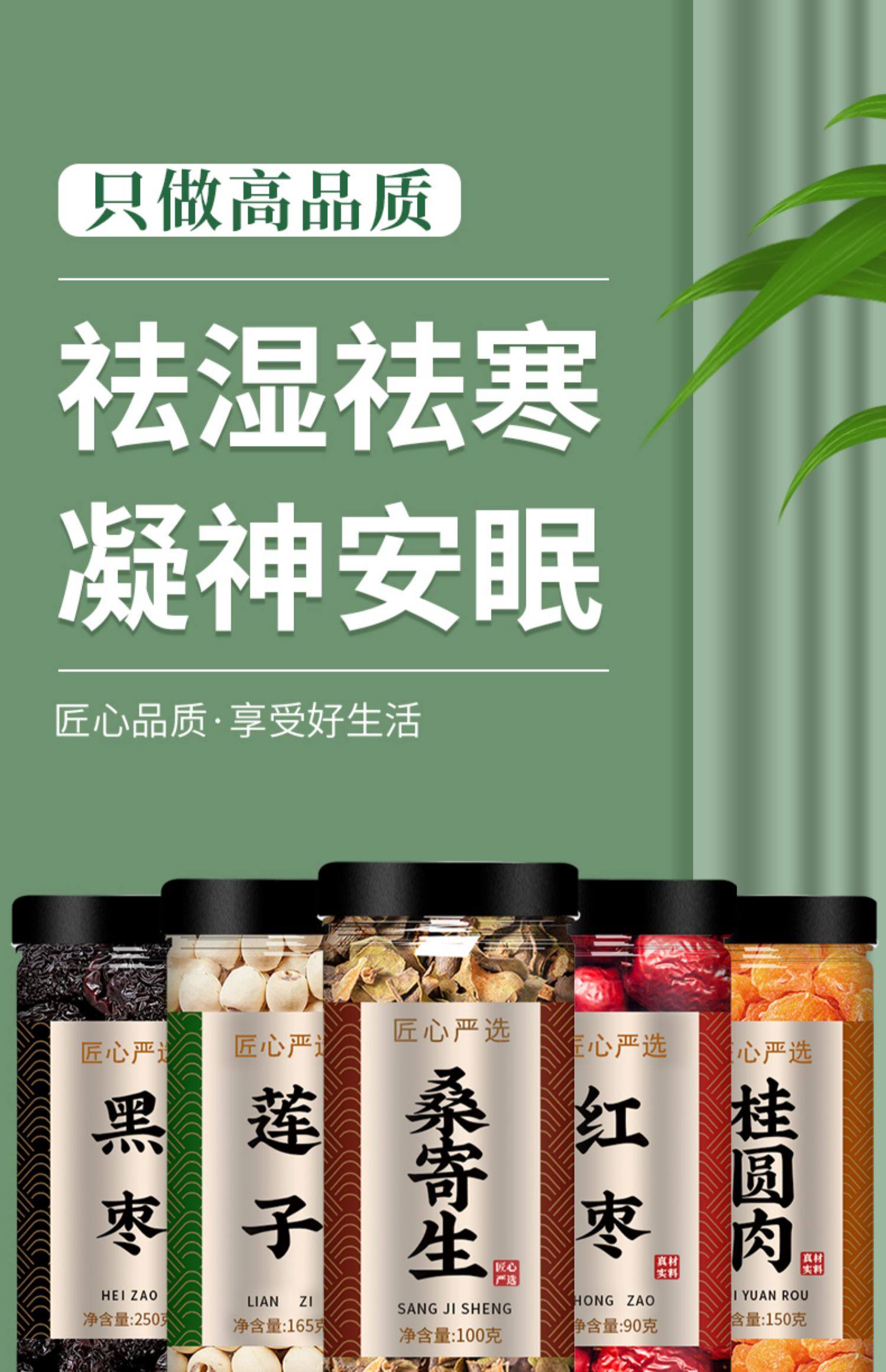 桑寄生莲子蛋茶中药材正品旗舰店野生大枣桂圆黑枣茶包的功效作用