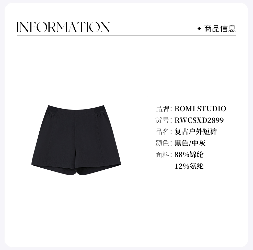 ROMI STUDIO 防晒UPF50轻薄冷感防水快干微皱休闲短裤RWCSXD2899
