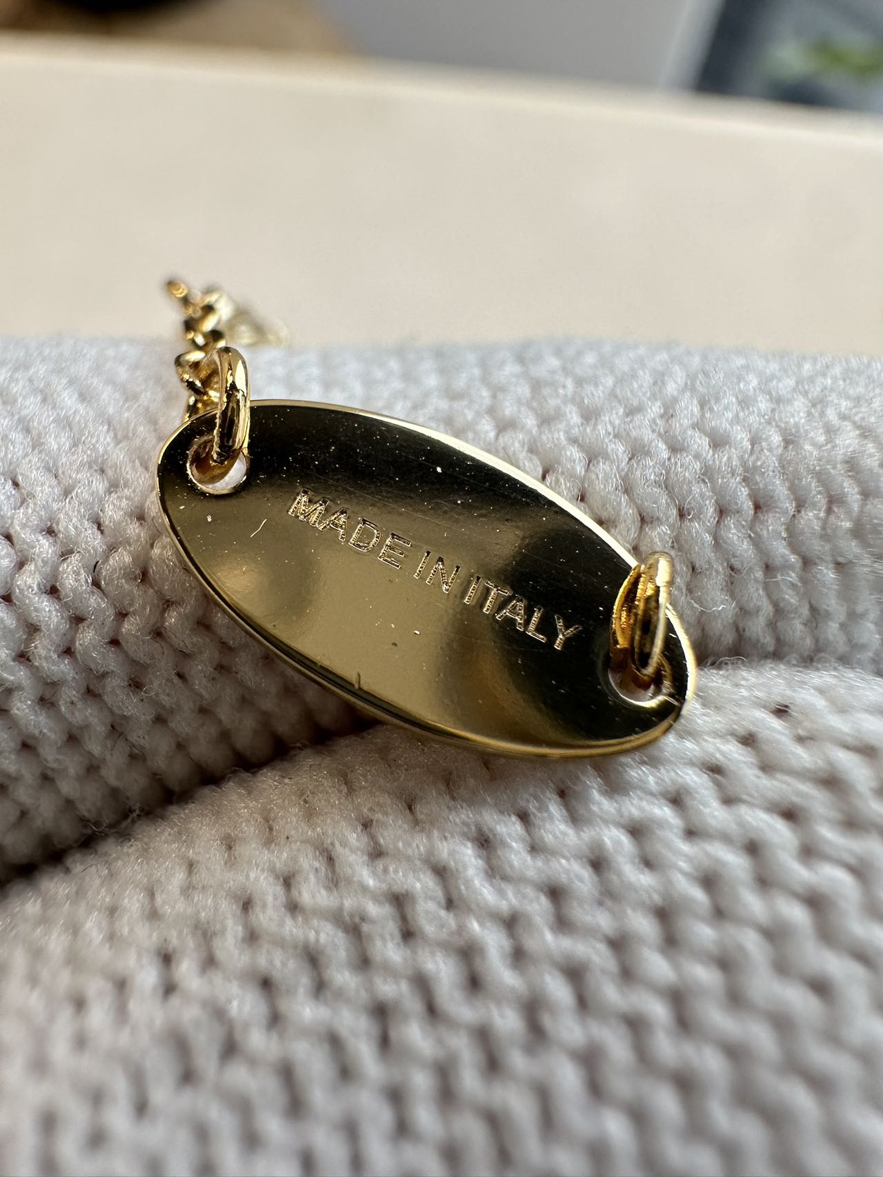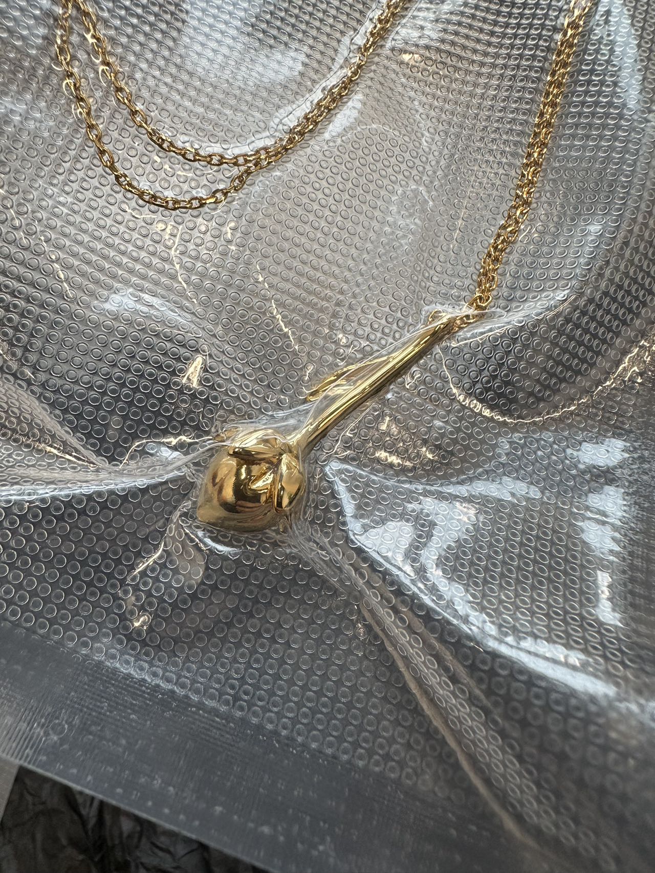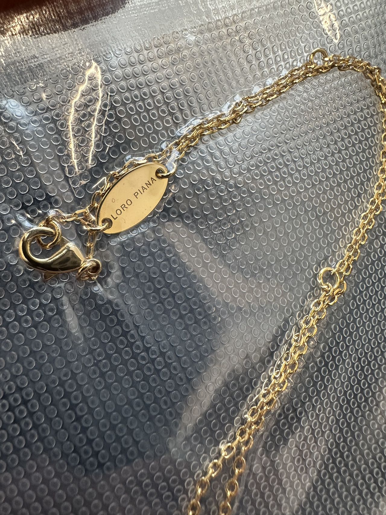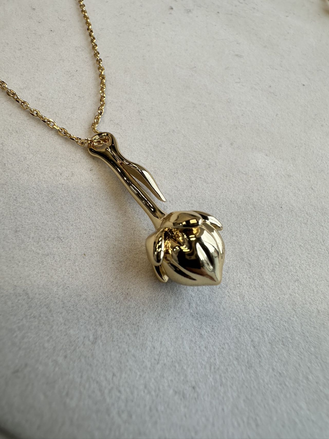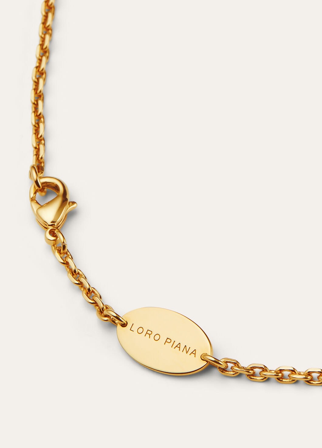 主体由黄铜精心打造,以珠宝太阳金(20DS) 上色,呈现出迷人且高贵的色泽。细腻的链条贴合颈部曲线,舒适又不失精致感。
