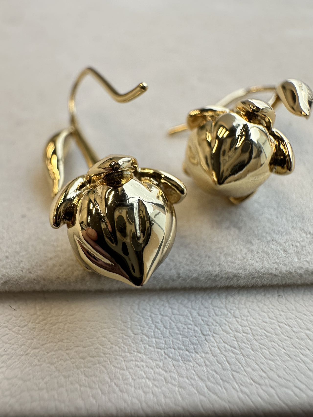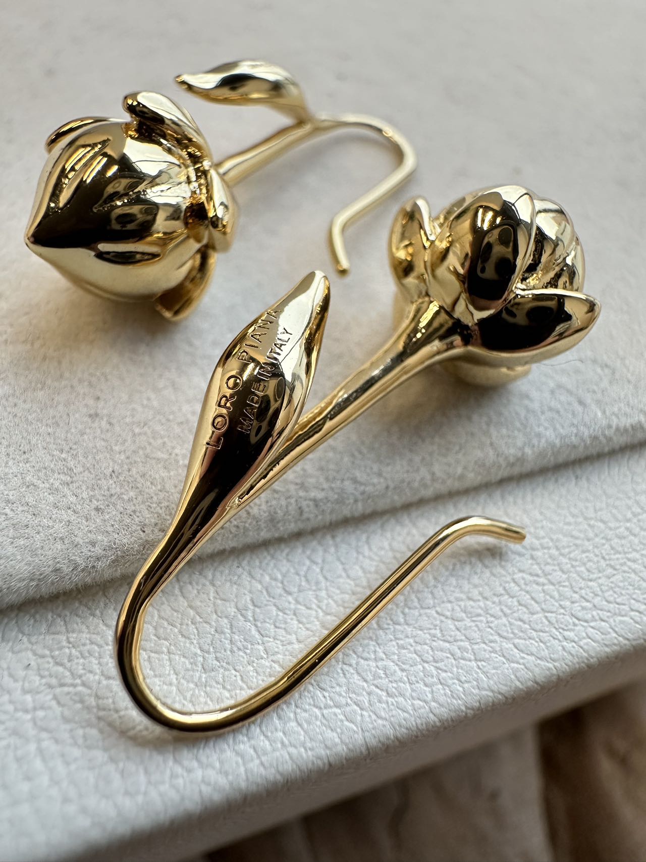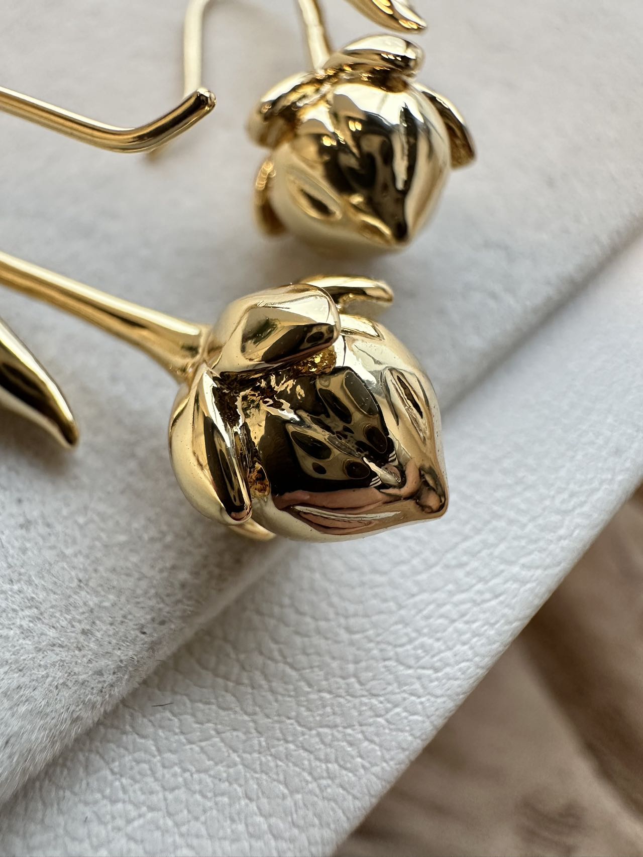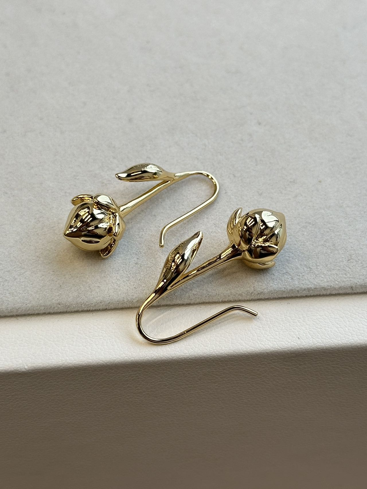 这两款虽然是铜,但是也分黄铜 青铜 和白铜,而且最重要的是饰品大厂一般会去镍,用的也是黄铜,这样就能区分大部分市场货,再说咱家的电镀要求十分高,这样呈现出的质感才能比拟白银和K金的质感,才能配得上一线品牌!花蕾造型的雕琢也极为细腻,每片花瓣边缘经精心打磨,光滑且富有立体感,在光线下折射出细腻光泽,花瓣的起伏与卷曲自然逼真!