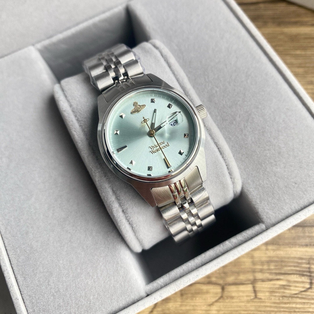 vivienne westwood微微安西太后女款石英表,碎冰蓝放射纹表盘搭配简约三针柳钉时标,12时位土星标识,3时位可视日期窗方便日常读时,任由挑选搭配不同的装饰细节,呈现独树一帜的自我风格,50米生活防水,一手现货全套特批