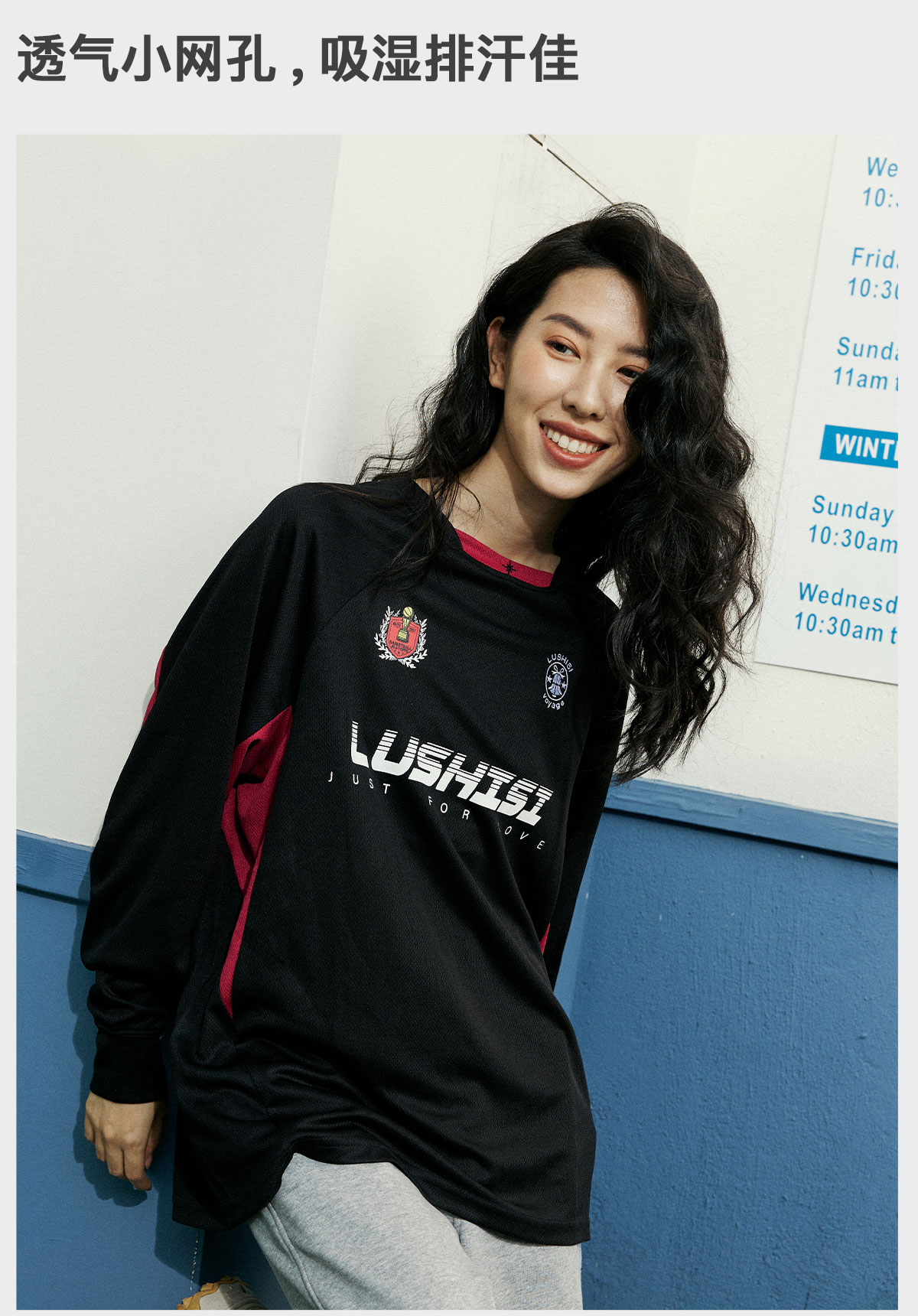 LUSHISI秋季[日落篮球]网眼速干运动长袖t恤男训练投篮服美式街头