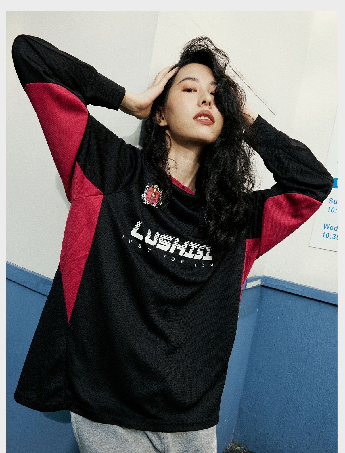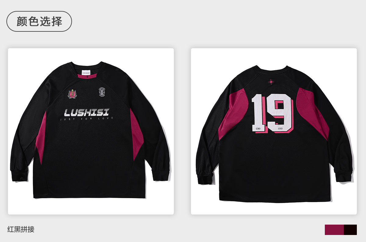 LUSHISI美式训练服篮球速干长袖t恤投篮服复古赛车服斗志主题印花