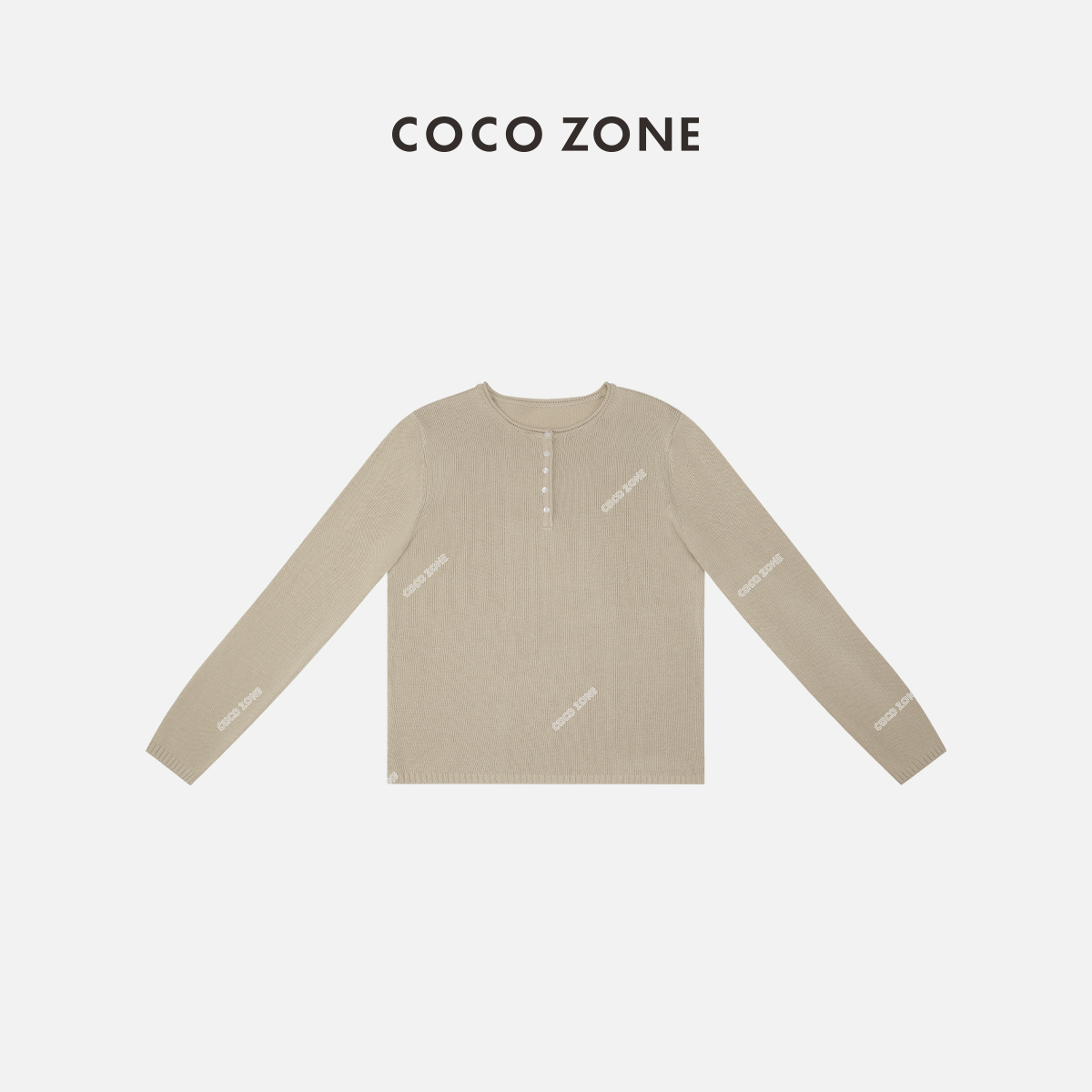 COCO ZONE 修身打底衫圆领纽扣长袖套头上衣24C10214
