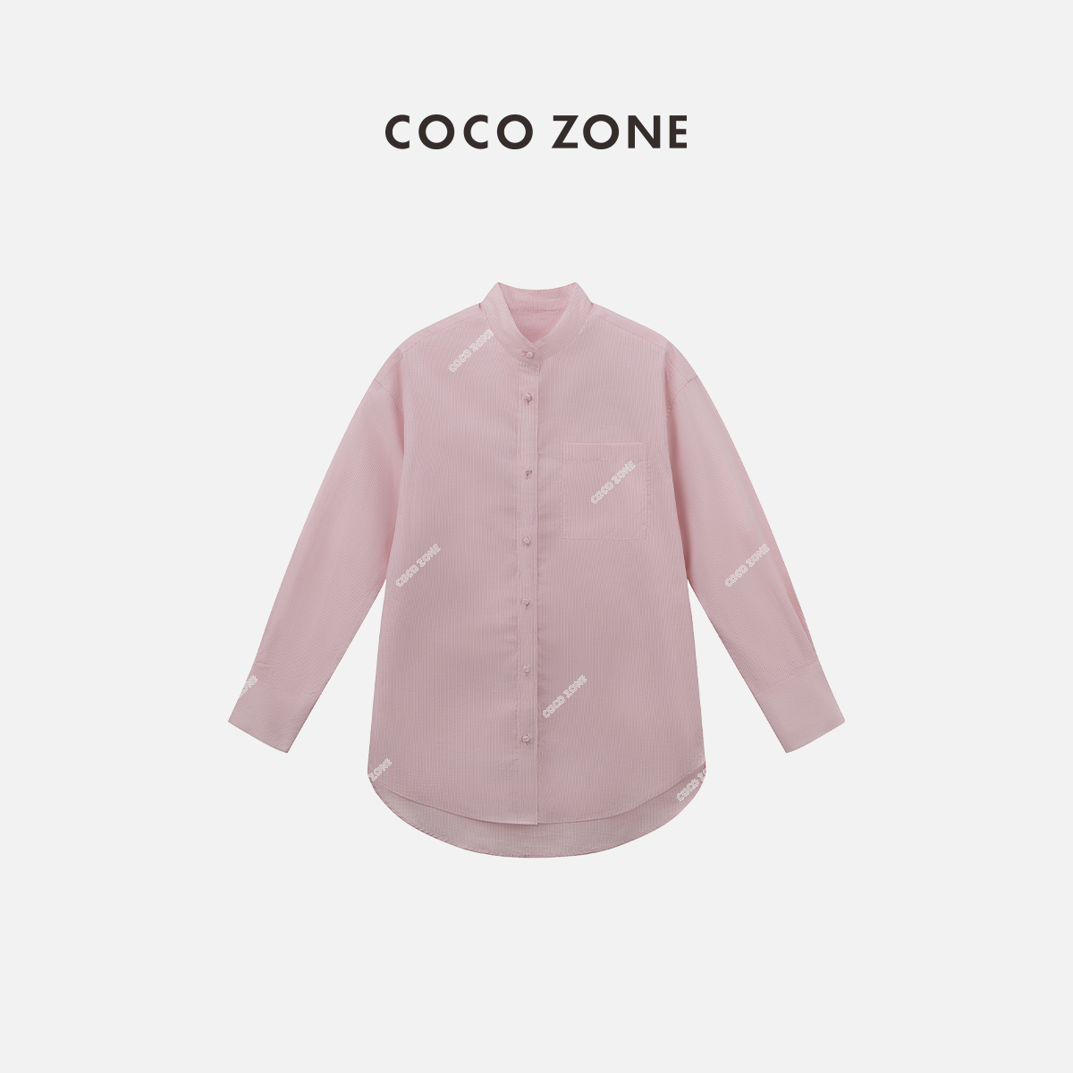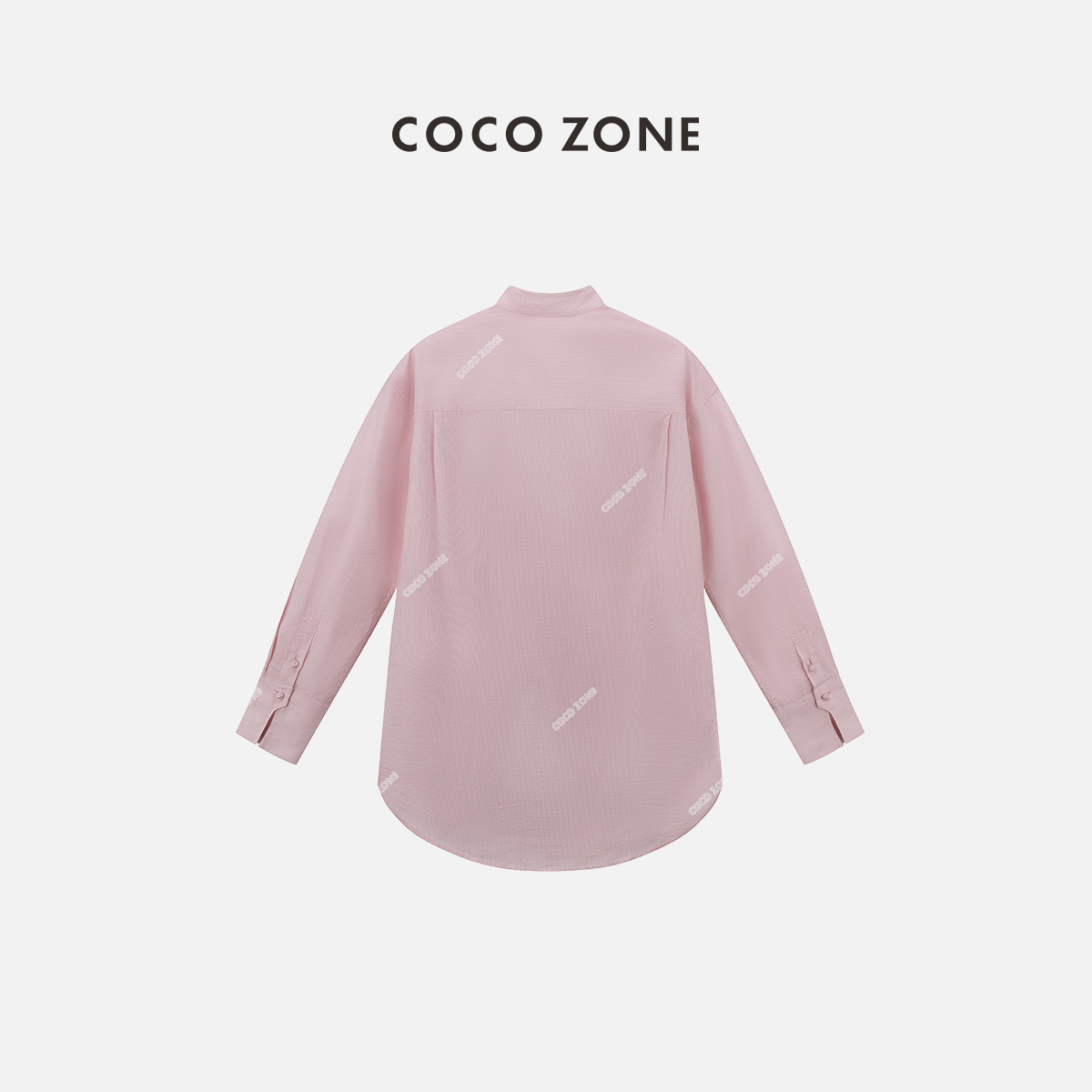 COCO ZONE"桃乐思"100棉气质通勤polo领衬衫粉色单排扣衬衣CC2A0257