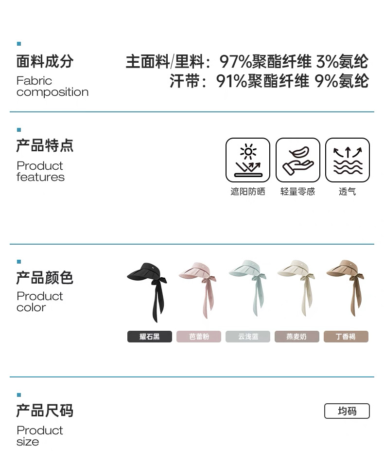 VVC云扇飘带帽百褶贝壳帽多功能飘带