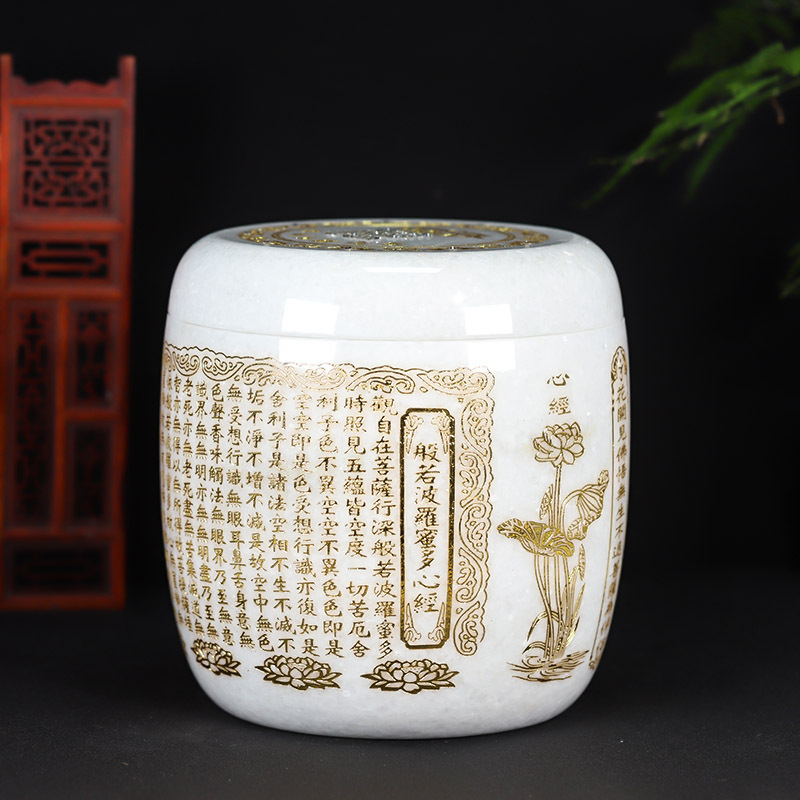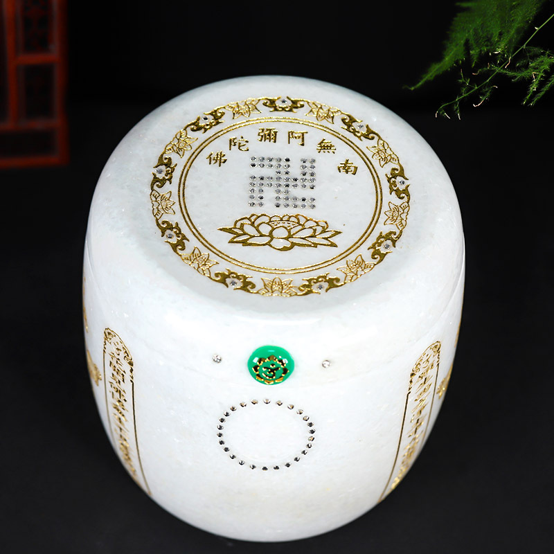 天然玉石白玉骨灰坛阿弥陀佛万字骨灰桶骨灰坛22.5*23cm