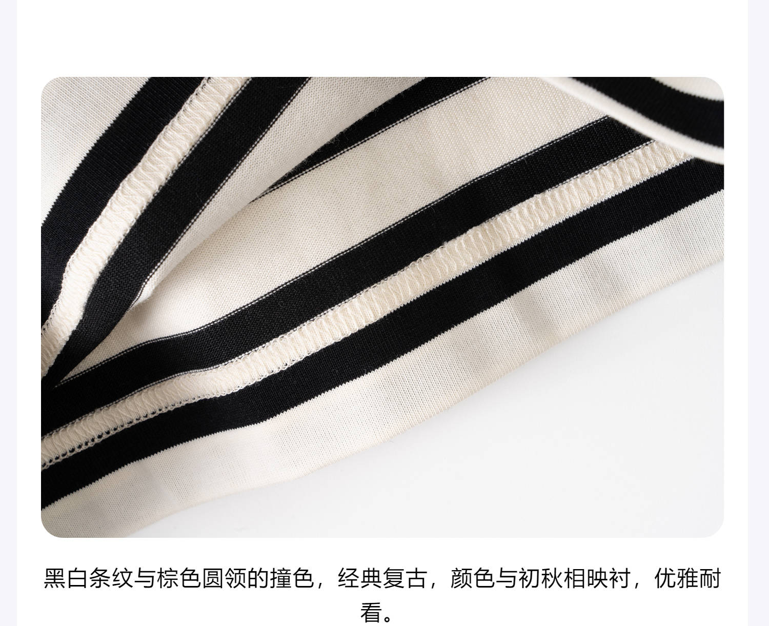 COCO ZONE 刘一一 简约圆领舒适百搭横向条纹撞色T恤 CD1A1441