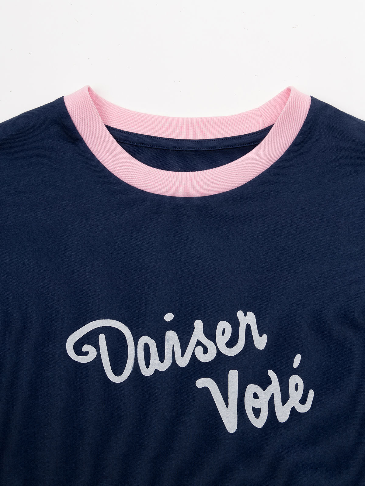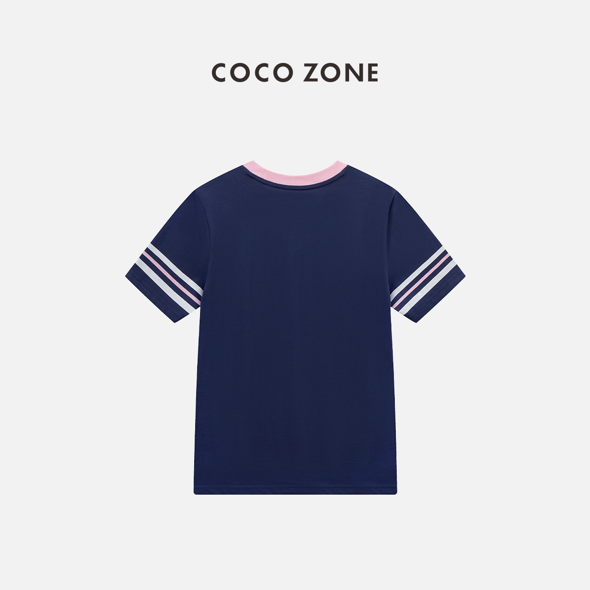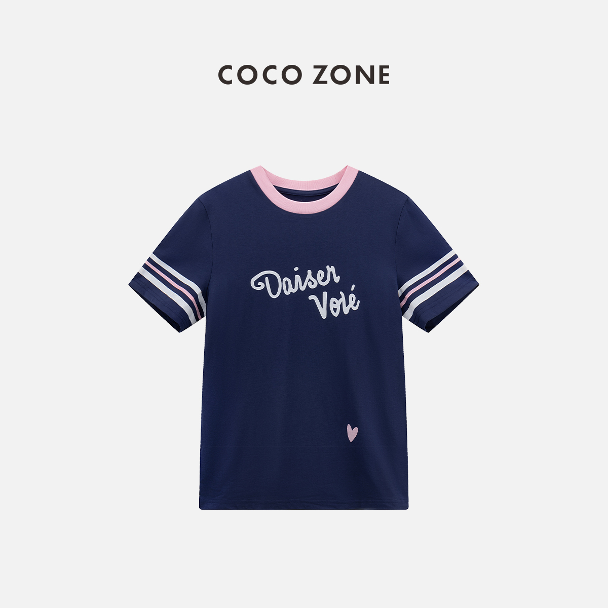 COCO ZONE“爱心T”夏季圆领撞色字母印花T恤宽松百搭短袖上衣CC2B0868
