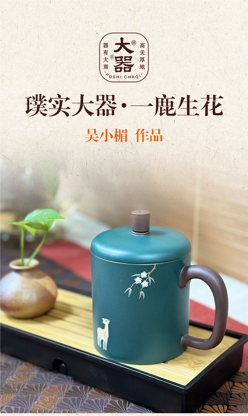 璞实大器一鹿生花原矿紫砂杯国省双大师吴小楣作品