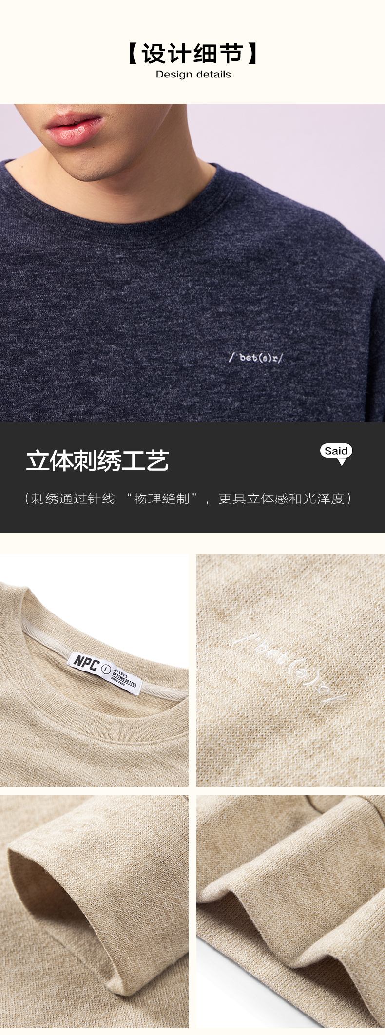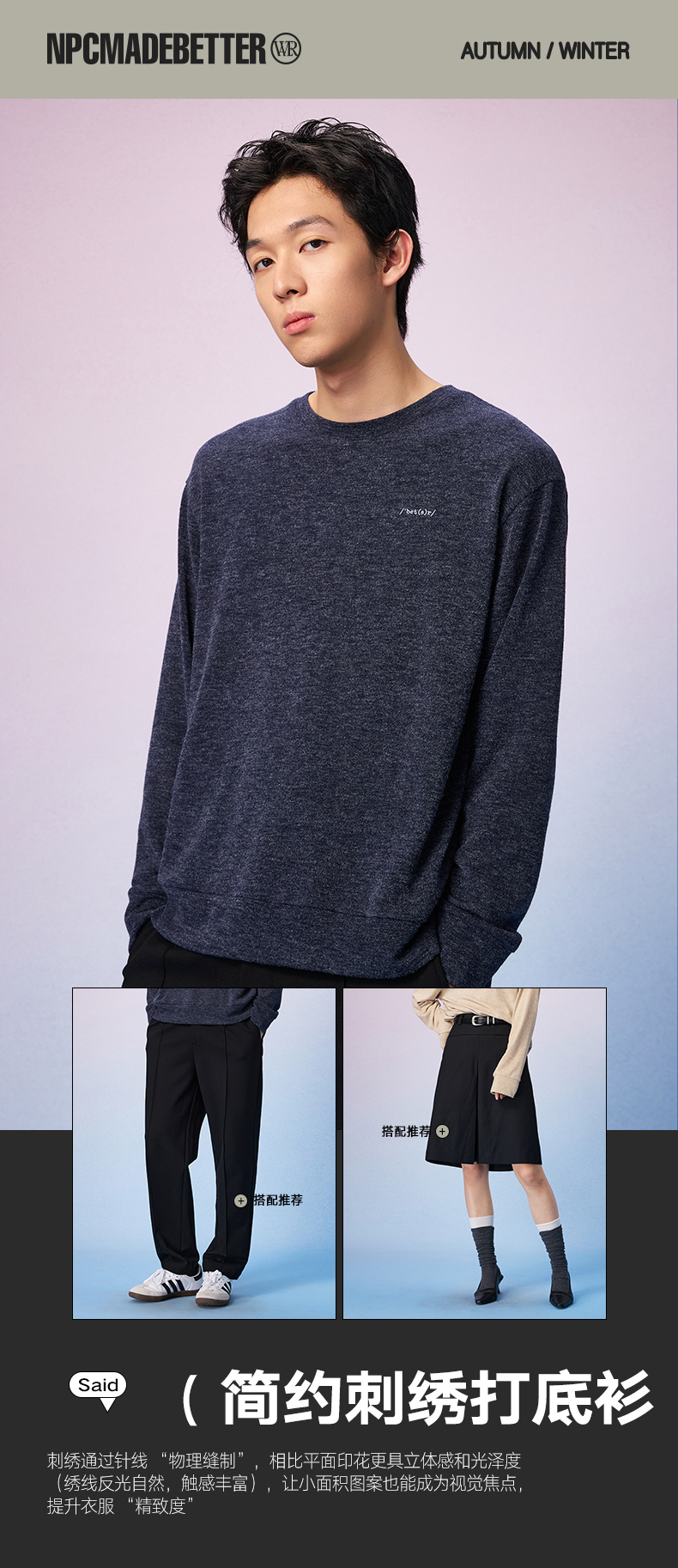 NPC潮牌小字母刺绣圆领氨纶针织打底衫男秋上新NP57TL12
