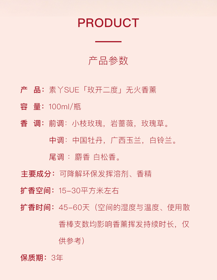 素丫SUE·小满系列无火香薰(玫开二度)100ml