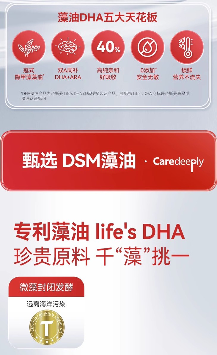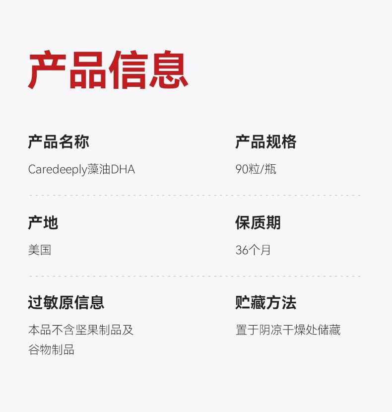 美国进口CareDeeply藻油DHA软胶囊*60粒|婴幼儿童专用|补脑益智 无腥味好吸收